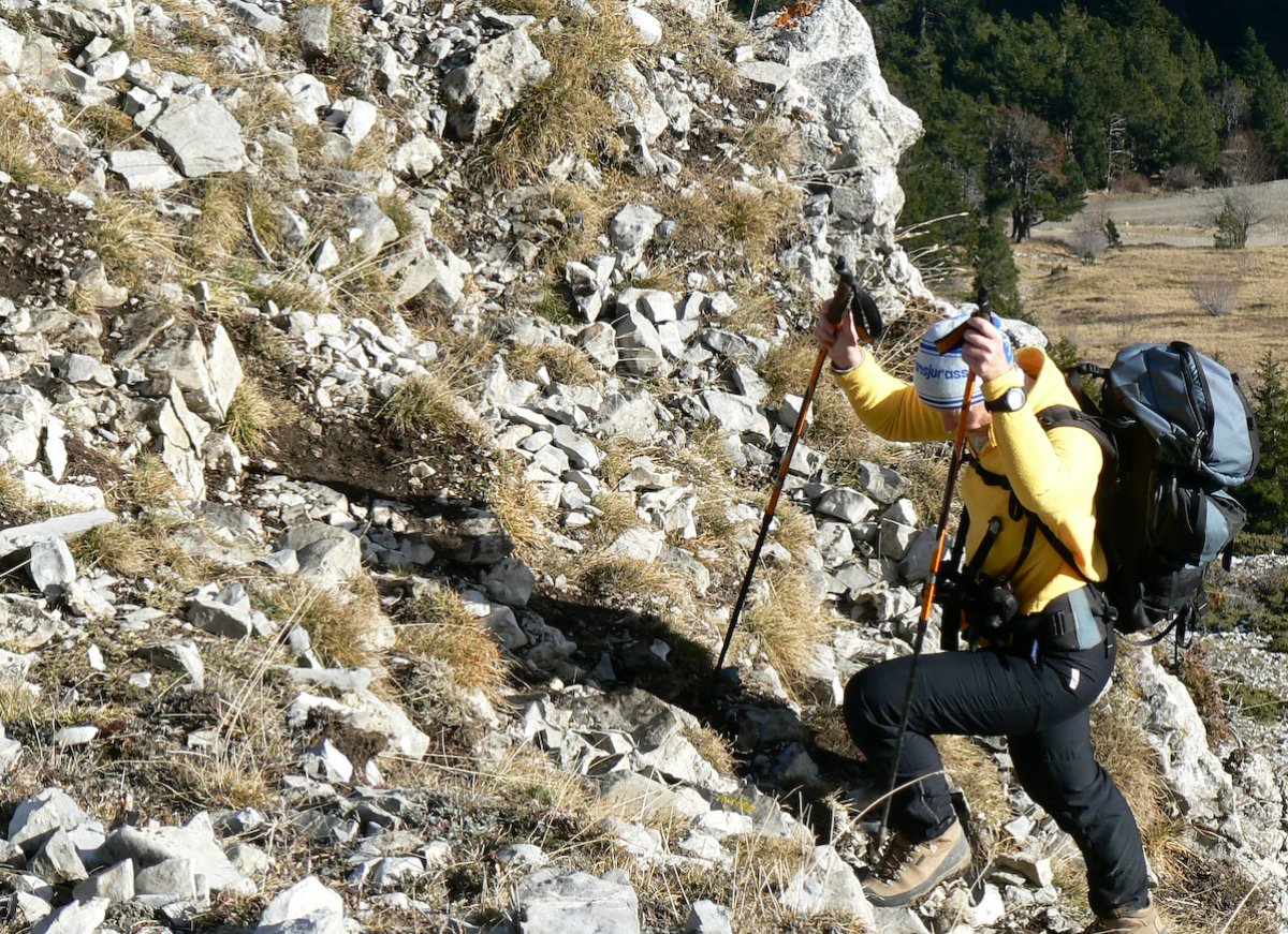 Matériel : bâtons, guêtres et vêtements imperméables et chauds.