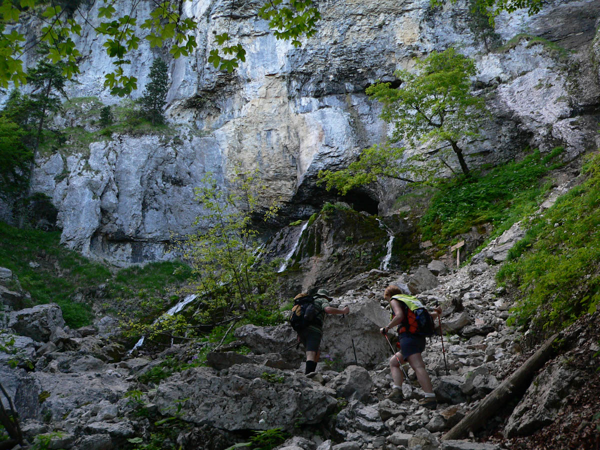 Difficulté : Sentier escarpé, caillouteux et pente soutenue à partir des sources du Guiers; le passage du trou du Glaz est câblé mais nécessite de l'attention, le Sangle de la Barrère est bien tracé, peu vertigineux, mais se situe entre deux falaises (ne pas avoir envie de sauter !), la cheminée du Paradis nécessite l'usage des mains (escalade avec des prises patinées par le passage), donc prudence.