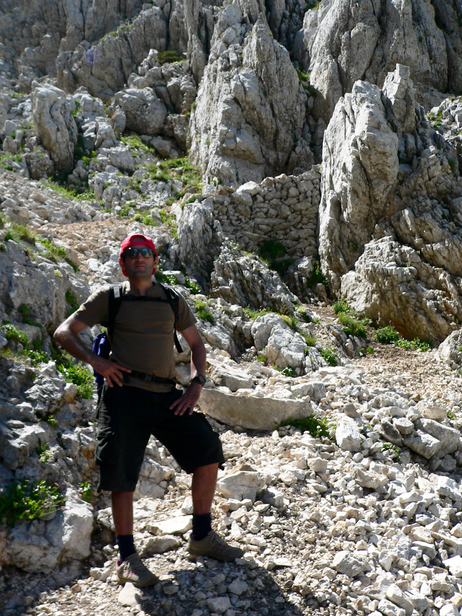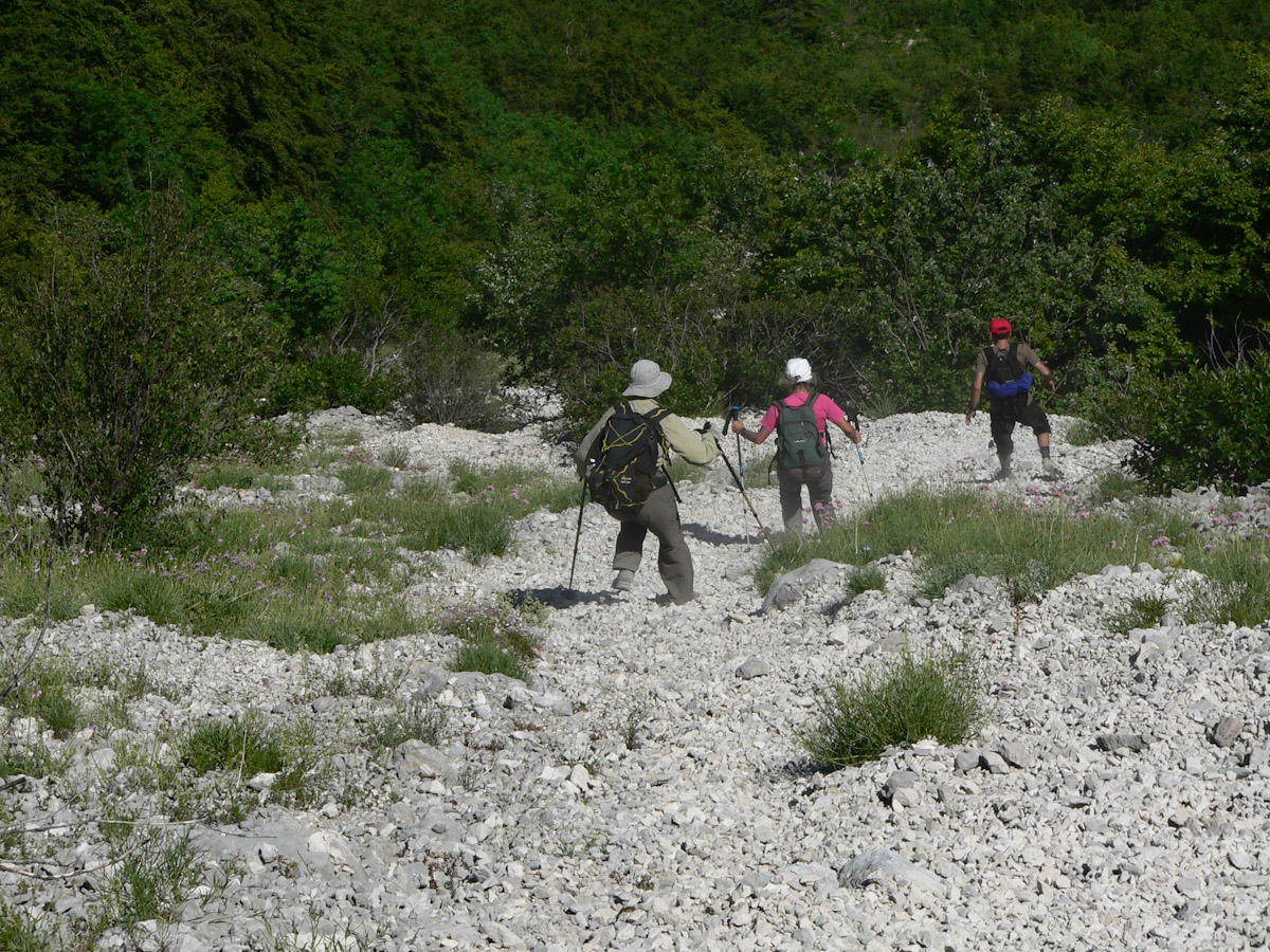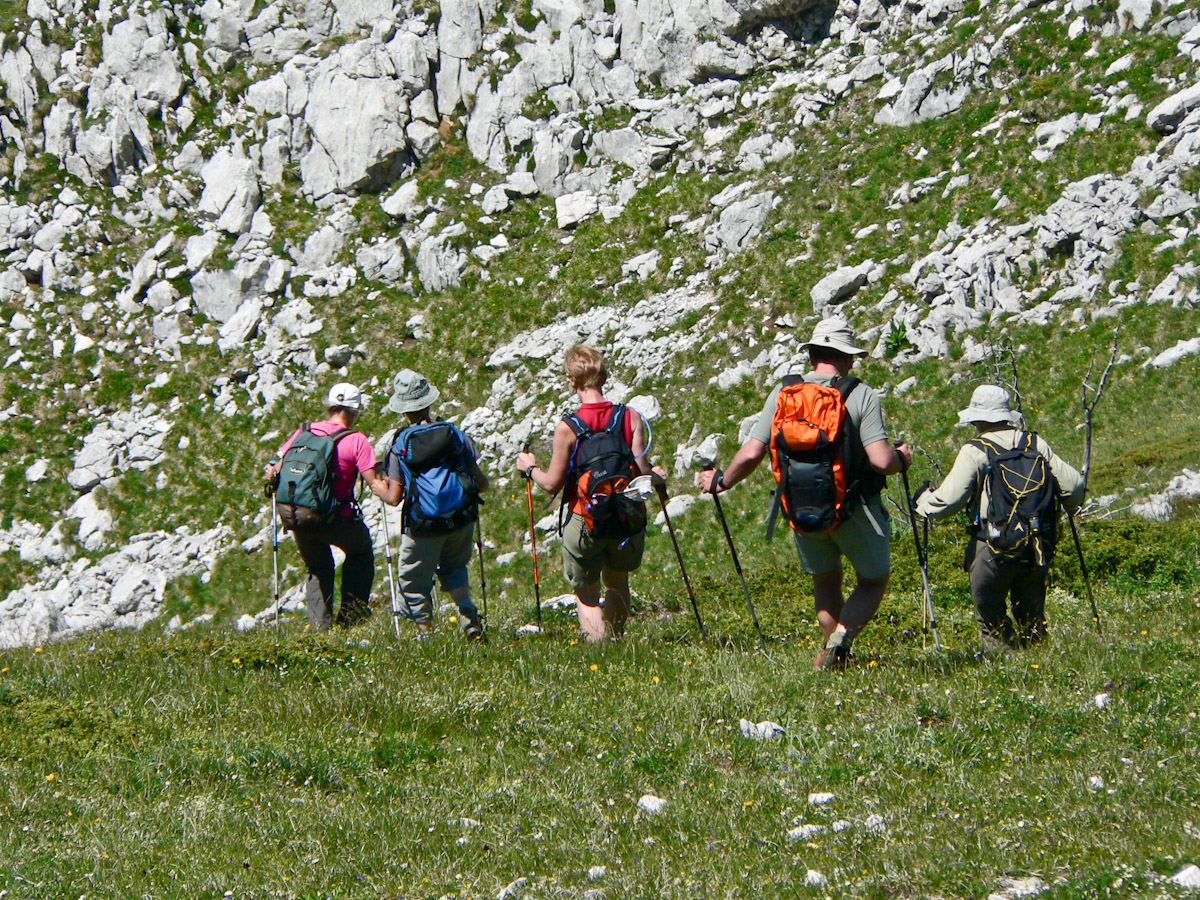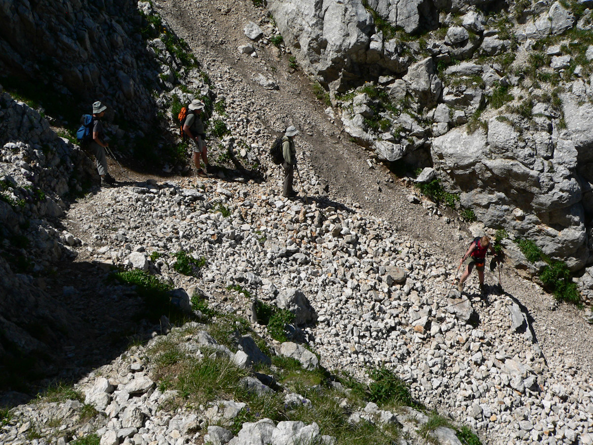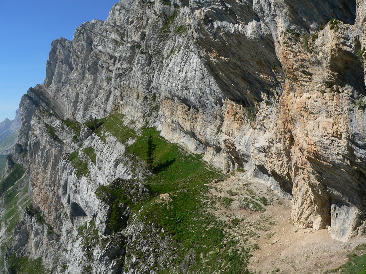 Difficulté : Un ensemble de passages exposés qui réclament prudence et beaucoup d'attention : passage aérien sur des pentes abruptes, vire herbeuse en pleine falaise mais bien tracée (style celle des Deux Soeurs que l'on a déjà faite, mais en plus beau), un couloir rocheux pour le pas de Serre Brion et pierreux pour le Pas Morta. Les chemins sont souvent caillouteux et parfois dégradés. Pas de sentier sur la crête, parcours entre herbes et lapiaz (nous en avons déjà fait une partie lors de notre passage aux Rochers de La Peyrouse (avec Janine en 2008).