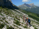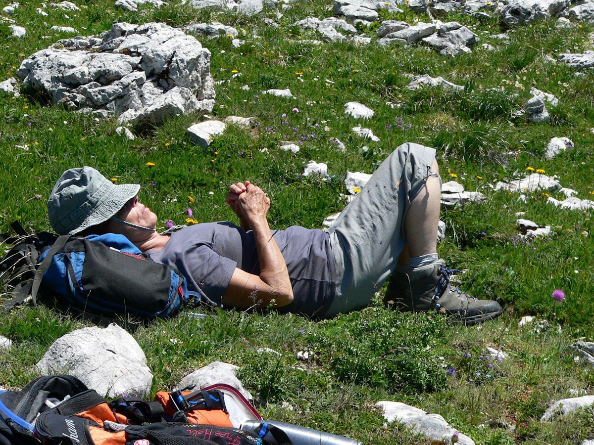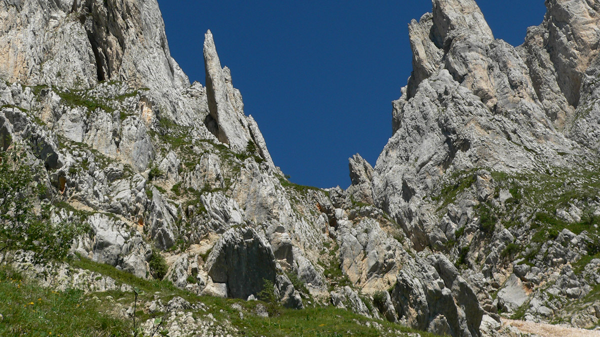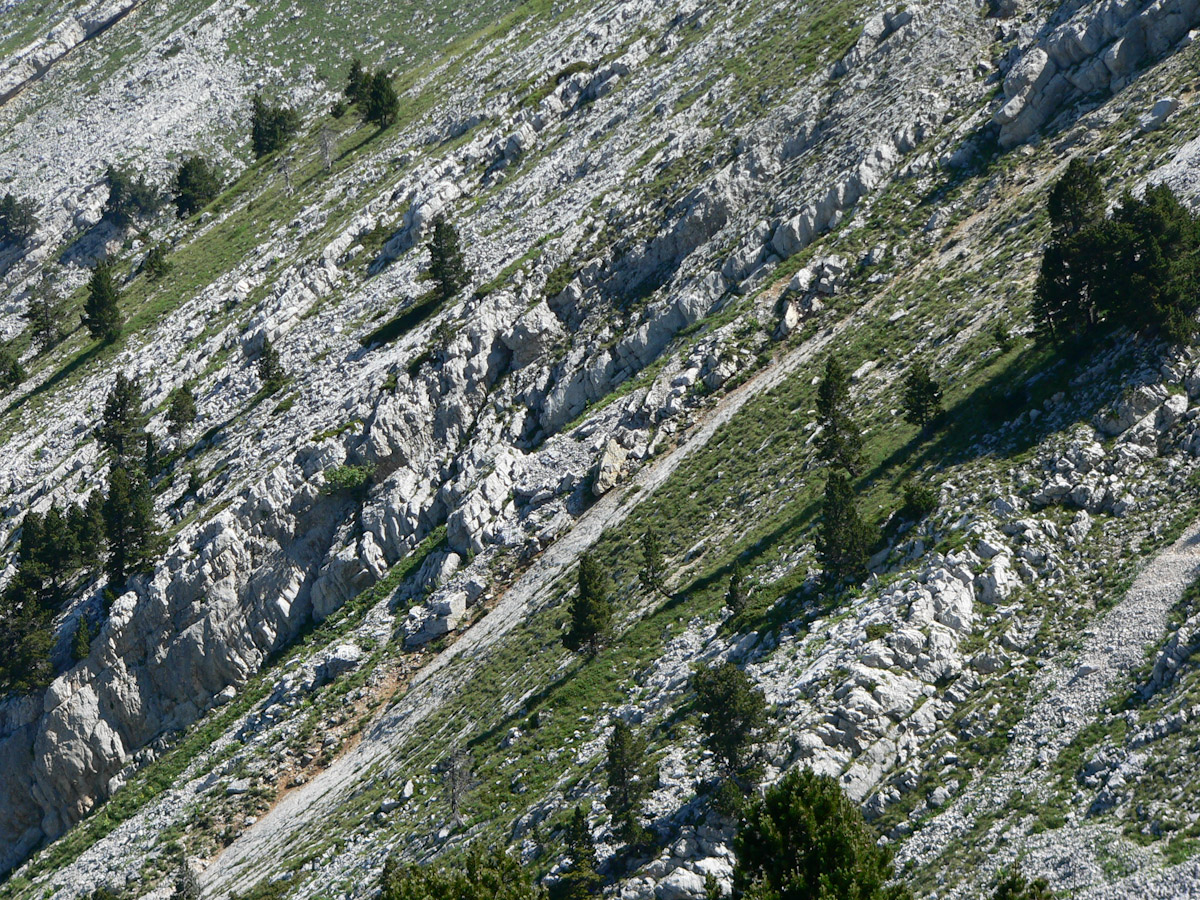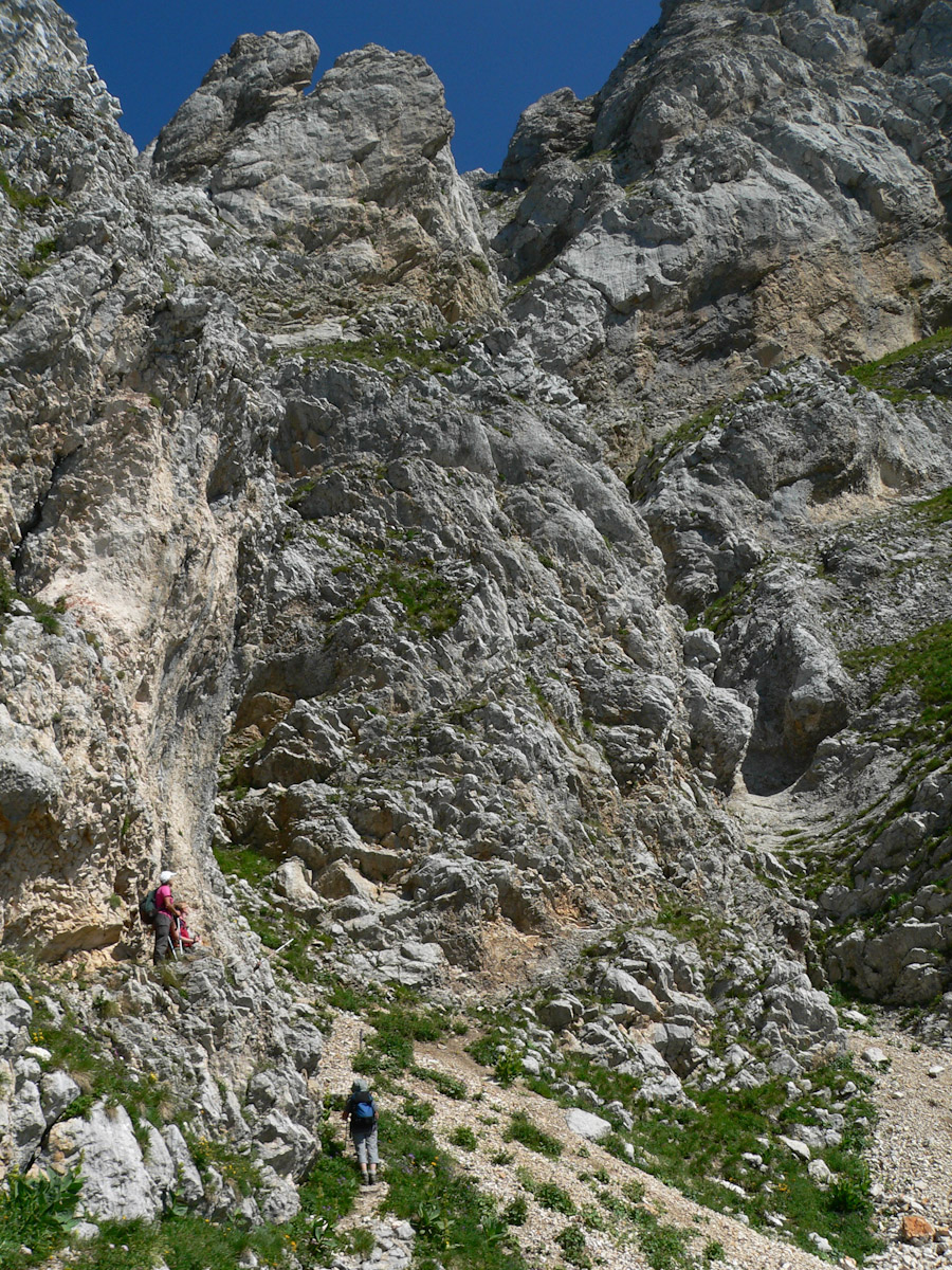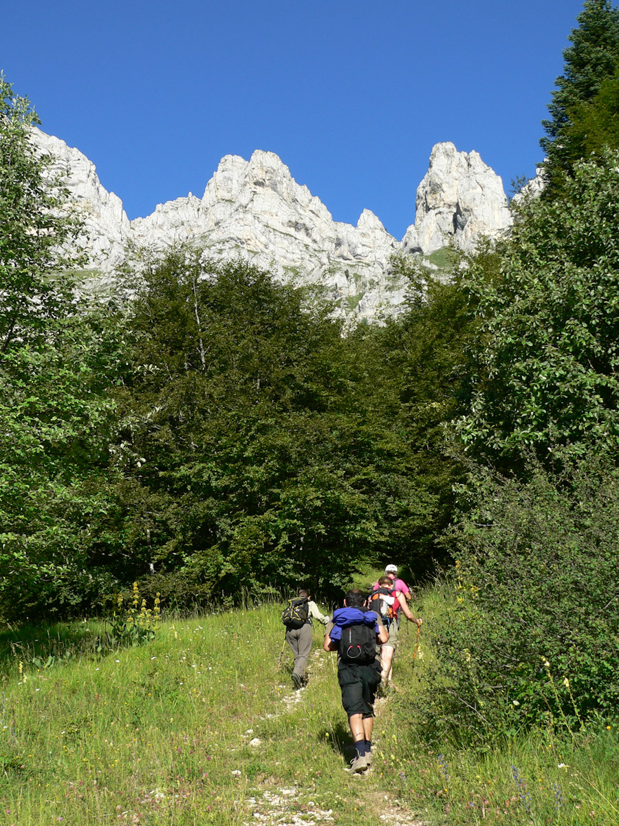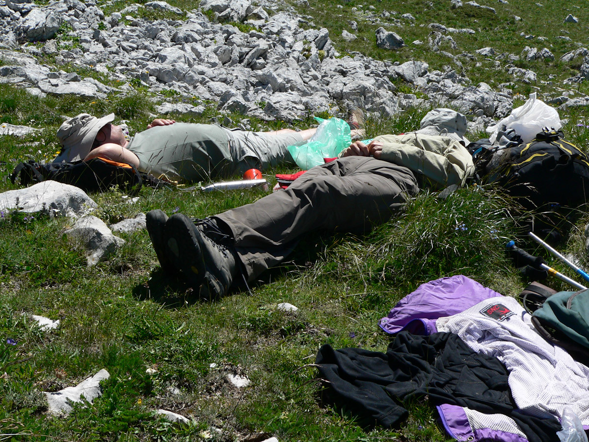 Difficulté : Un ensemble de passages exposés qui réclament prudence et beaucoup d'attention : passage aérien sur des pentes abruptes, vire herbeuse en pleine falaise mais bien tracée (style celle des Deux Soeurs que l'on a déjà faite, mais en plus beau), un couloir rocheux pour le pas de Serre Brion et pierreux pour le Pas Morta. Les chemins sont souvent caillouteux et parfois dégradés. Pas de sentier sur la crête, parcours entre herbes et lapiaz (nous en avons déjà fait une partie lors de notre passage aux Rochers de La Peyrouse (avec Janine en 2008).