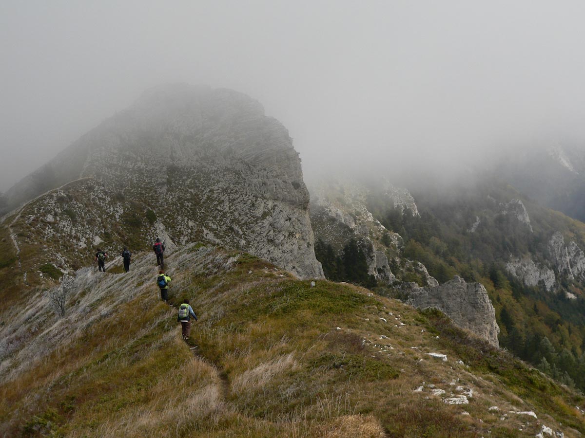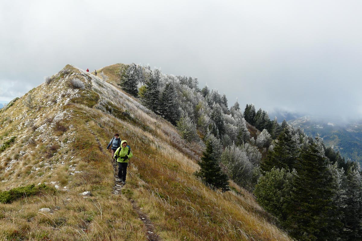 Matériel : bâtons, de quoi se couvrir (vent du Nord annoncé), coupe vent et imperméable, parapluie si on le désire (possibilité de le tester en parapente pour les intrépides, le club n'est pas responsable) + ... tout le reste. Itinéraire à rechercher pour le col de Priau et la poursuite sur Piégros (sentier à flanc, léger balisage bleu (?) sous la Feuillette)