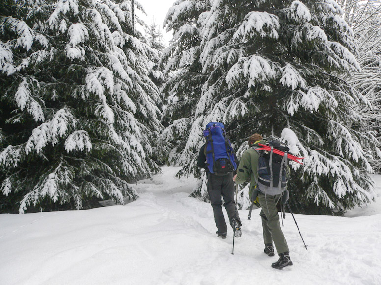 Matériel : bâtons, raquettes, guêtres, vêtements chauds en rapport avec la saison, kit arva pelle sonde conseillé (essai du matériel !)+ ... tout le reste.