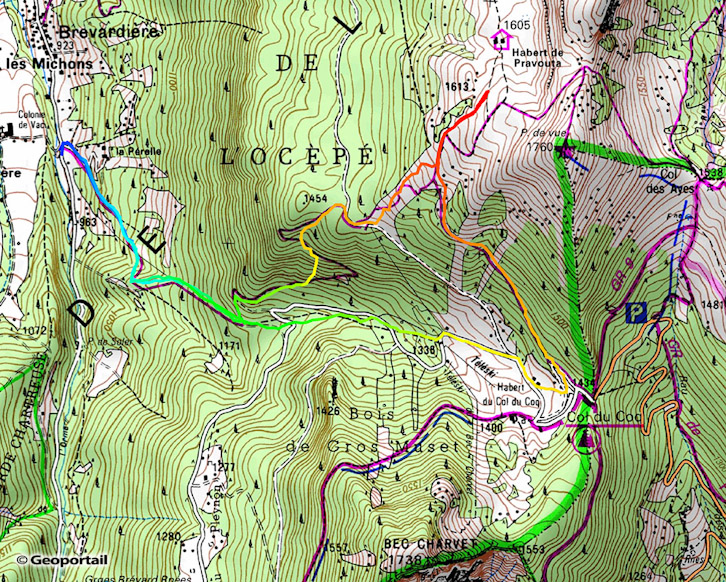Itinéraire routier : Col de Porte, Saint-Hugues de Chartreuse, hameau de Brévardières.