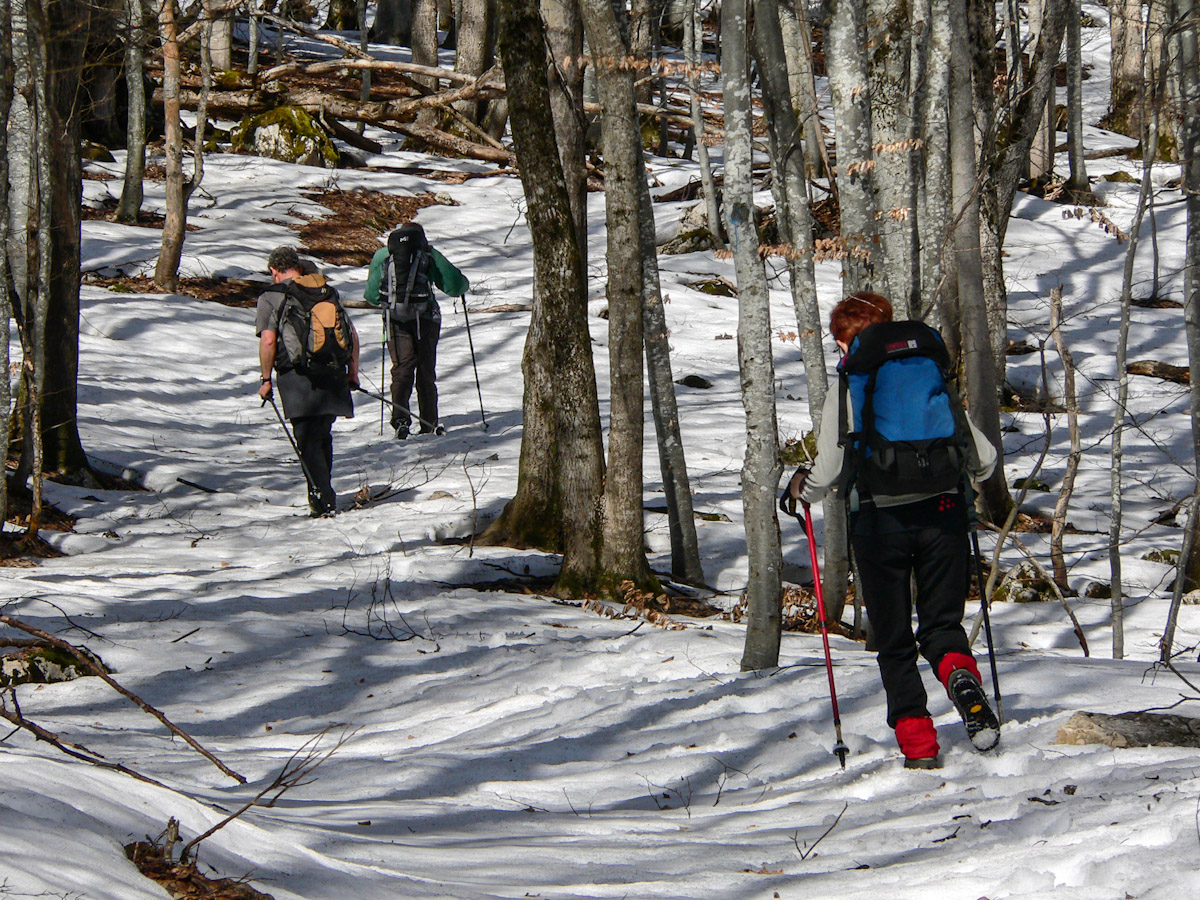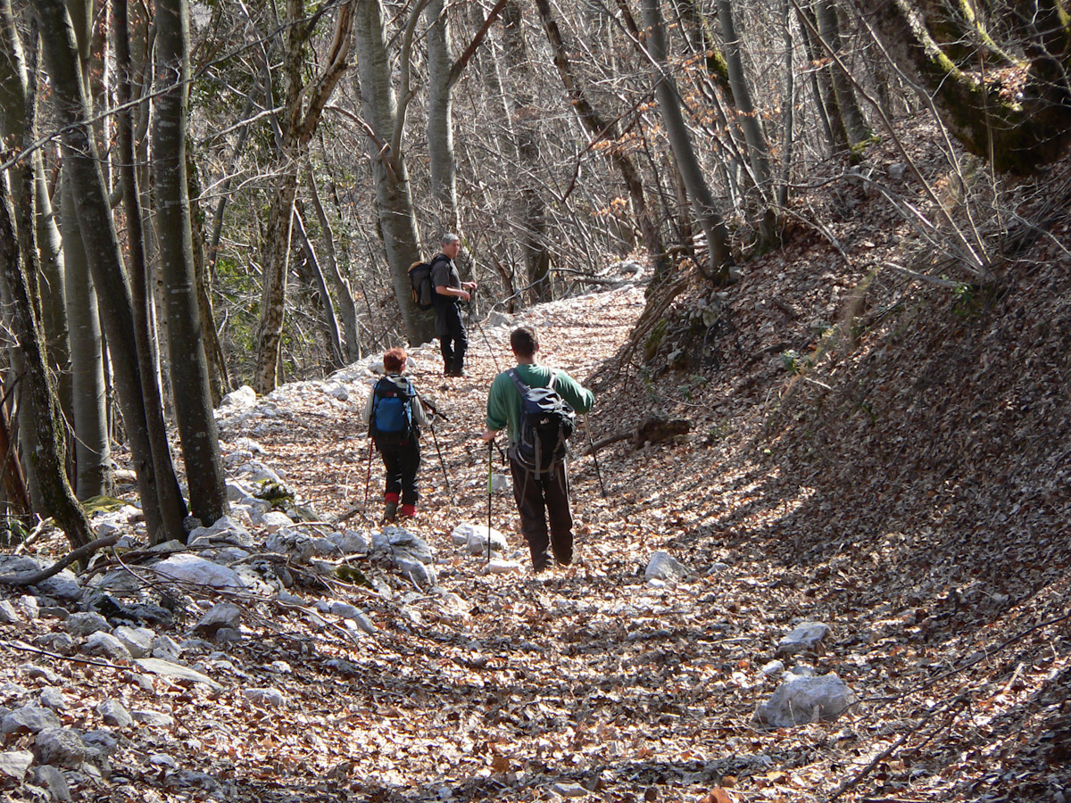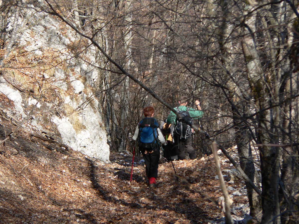 Remarque : Nous avions déjà fait cette sortie en 2008, mais nous n'avions pas trouvé l'itinéraire de descente ce qui nous avait amené à faire le sanglier pour regagner le parking en circuit. Si on ne s'est pas perdu, possibilité d'aller voit plus loin l'entrée de la grotte de la Barre Mangin et même d'aller à l'Ouillon, petit monolithe situé à 1501 m d'altitude vers les Rochers de Chalves.