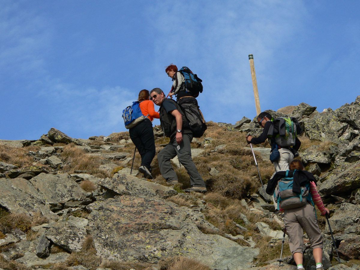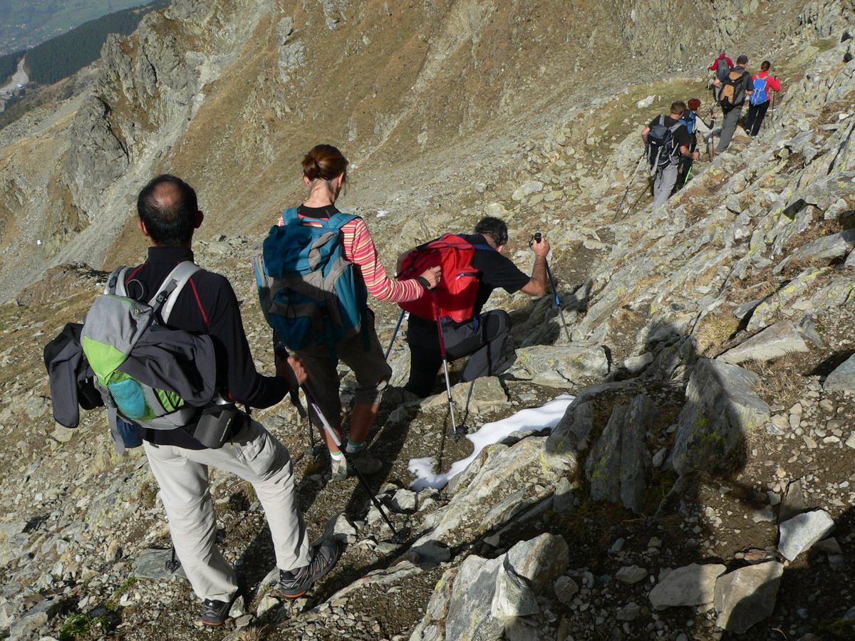 Matériel : bâtons, vêtements de saison, coupe vent imperméable, + … tout le reste.