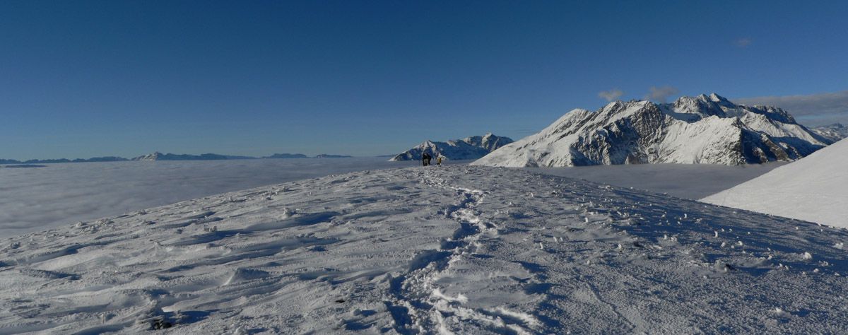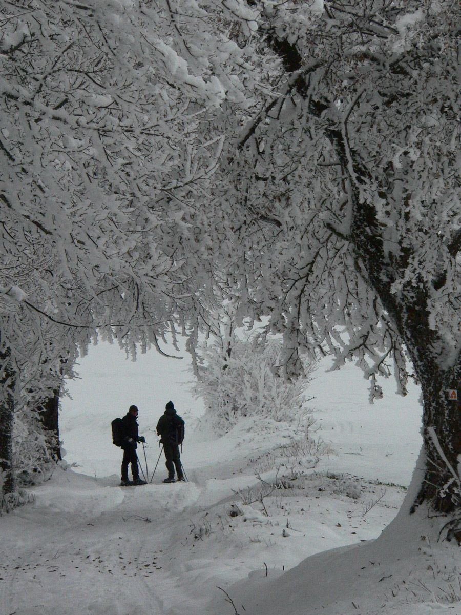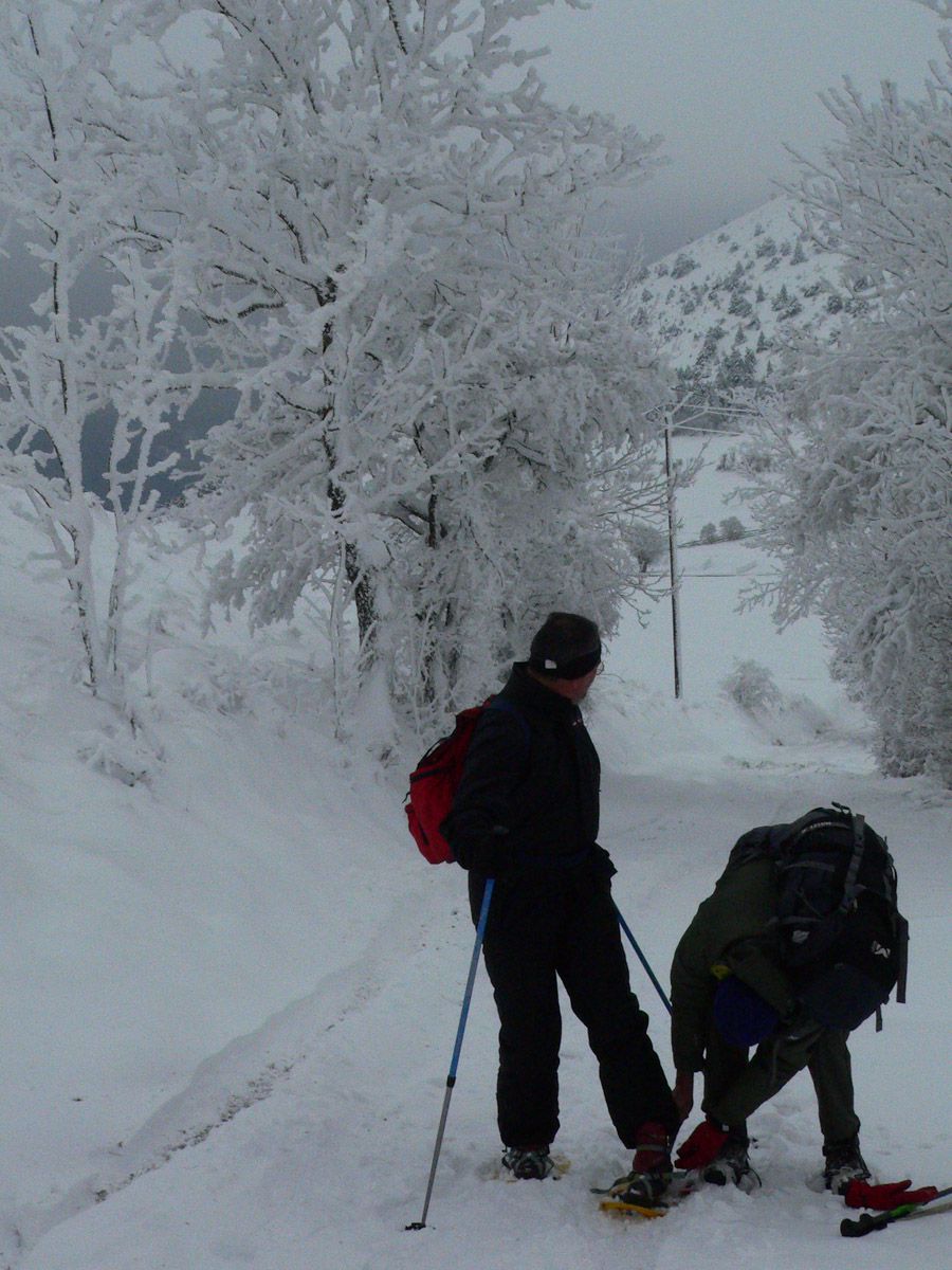 Matériel : Raquettes, guêtres, bâtons (de ski), vêtements chauds, coupe vent et imperméable, kit arva-pêlle-sonde conseillé, + ... tout le reste.