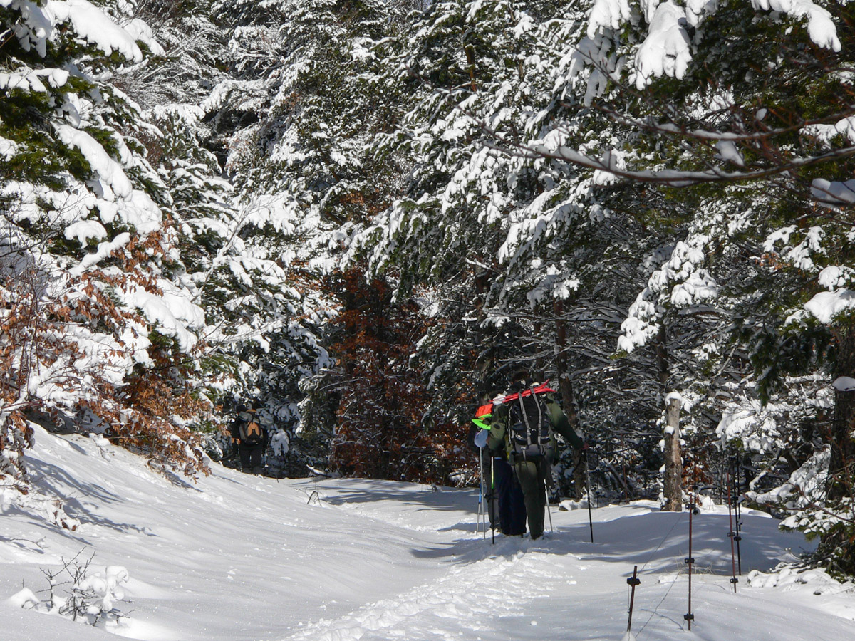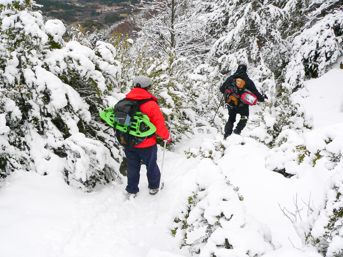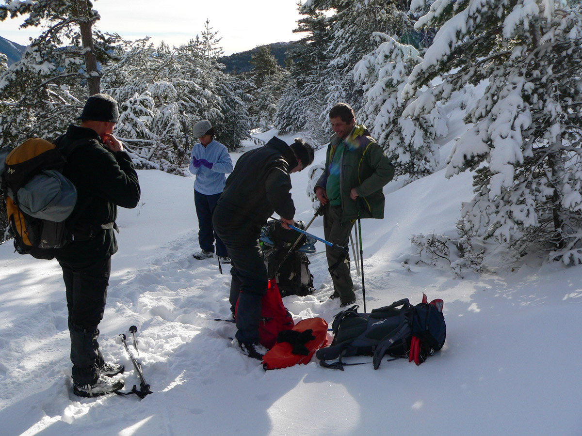 Matériel : Raquettes, guêtres, bâtons (de ski), vêtements chauds, coupe vent et imperméable, kit arva-pêlle-sonde, + ... tout le reste.