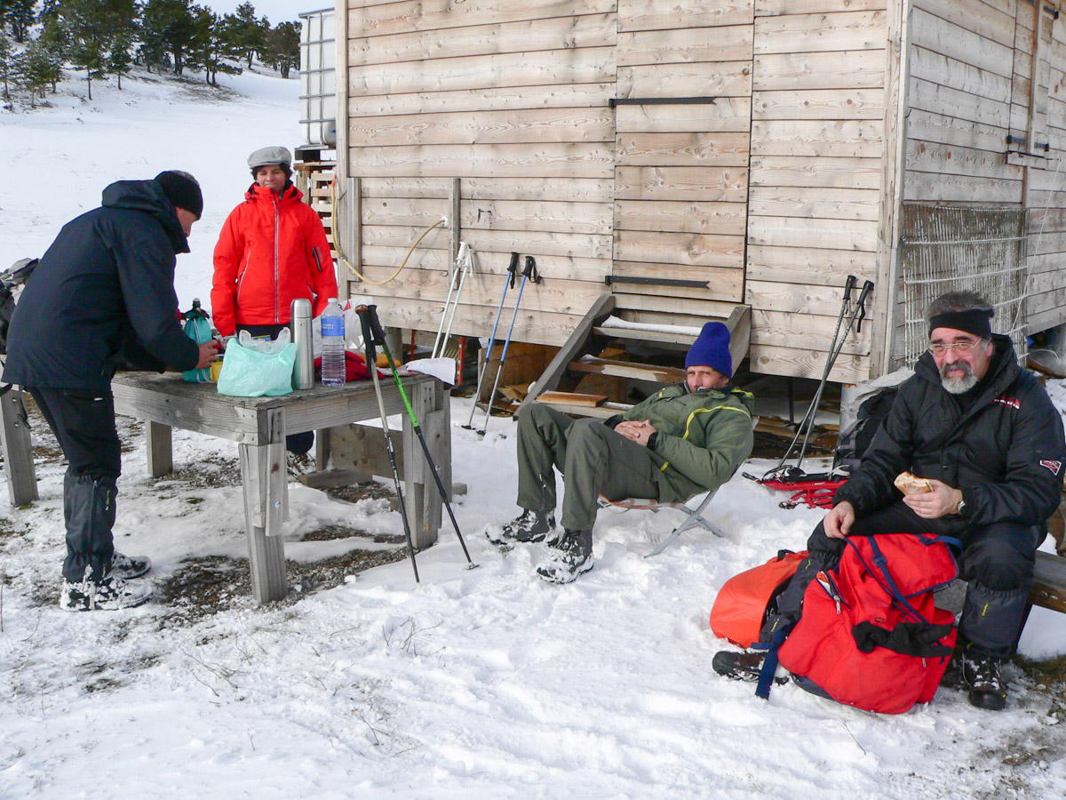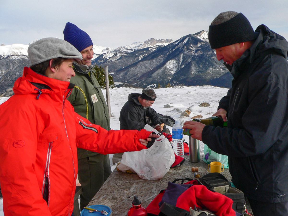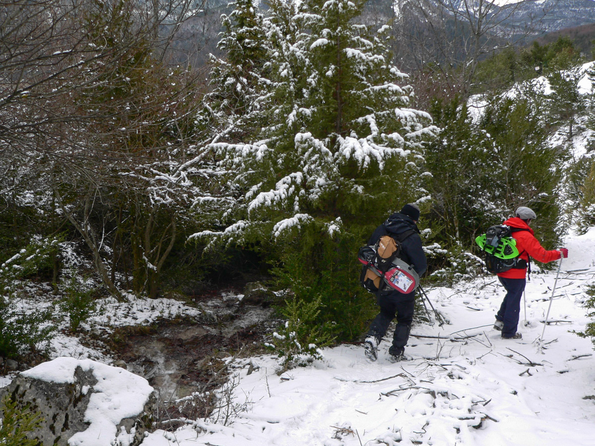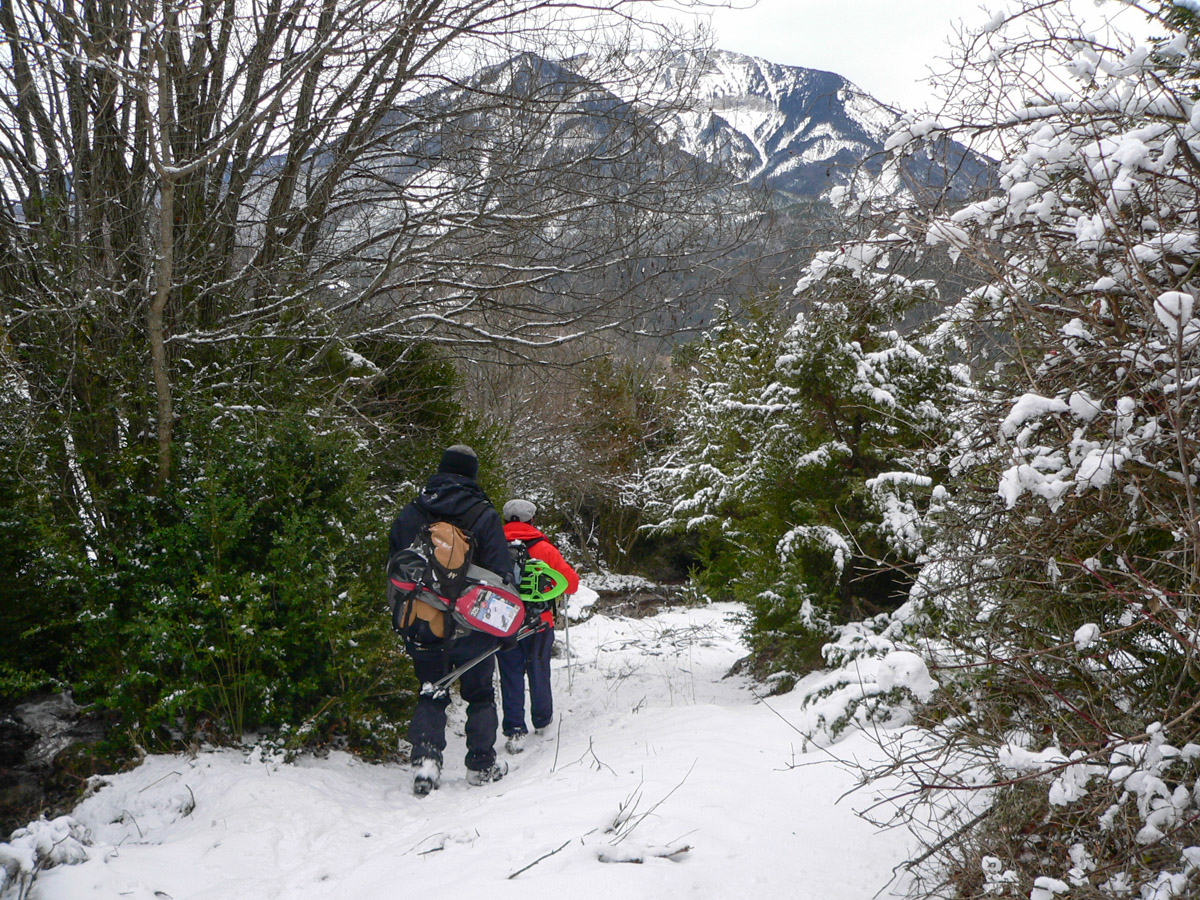 Matériel : Raquettes, guêtres, bâtons (de ski), vêtements chauds, coupe vent et imperméable, kit arva-pêlle-sonde, + ... tout le reste.