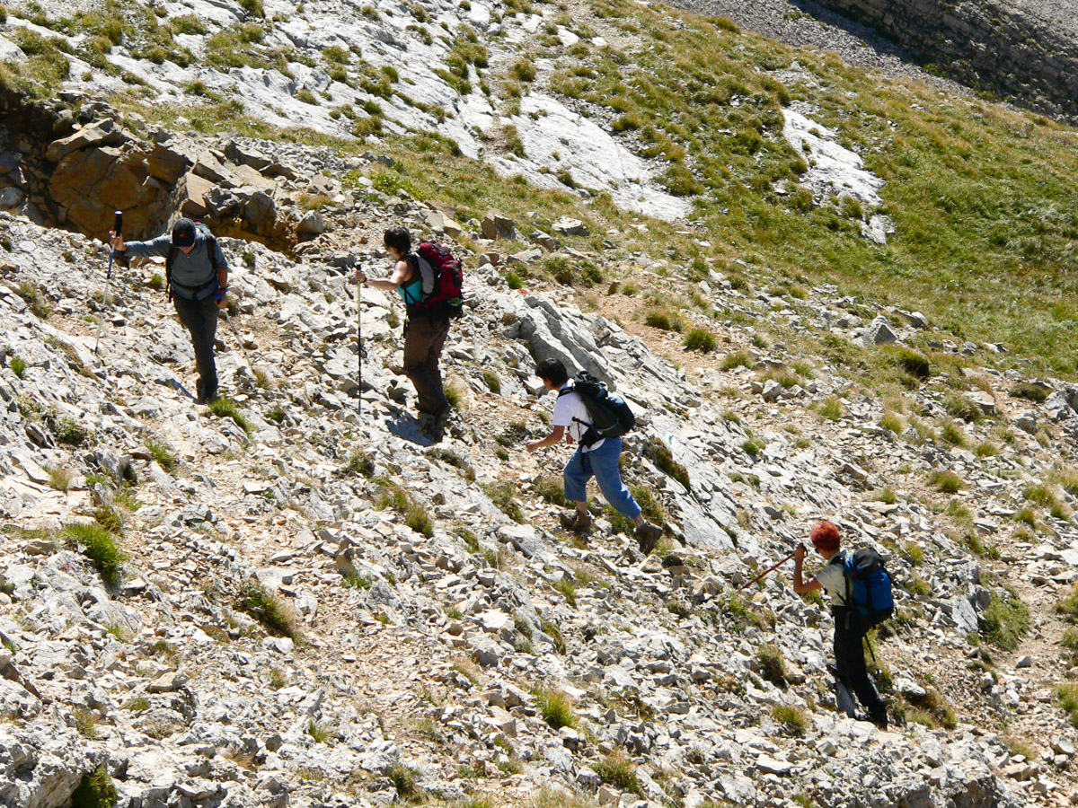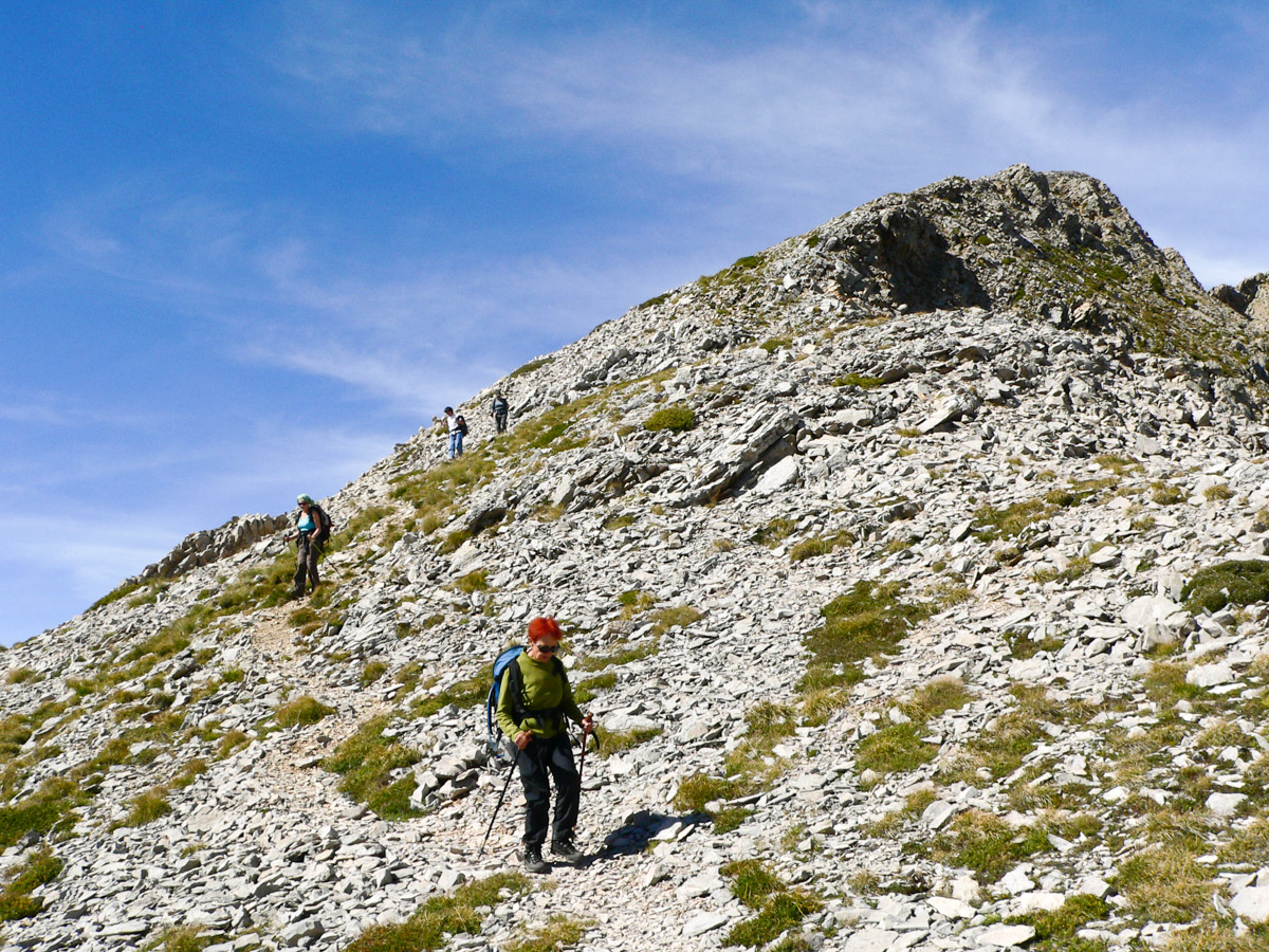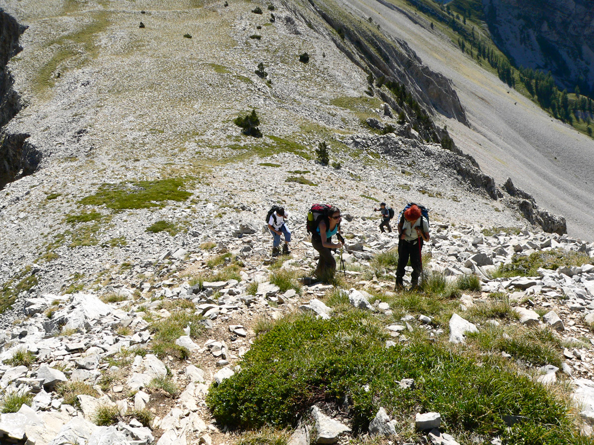 Difficulté : Pour la partie sommitale, parcours d'arêtes dans des pentes raides, rocailleuses et aériennes par endroit, demandant de la vigilance. Attention aux à pics de la face Est. Itinéraire hors sentier pour une partie de la descente.