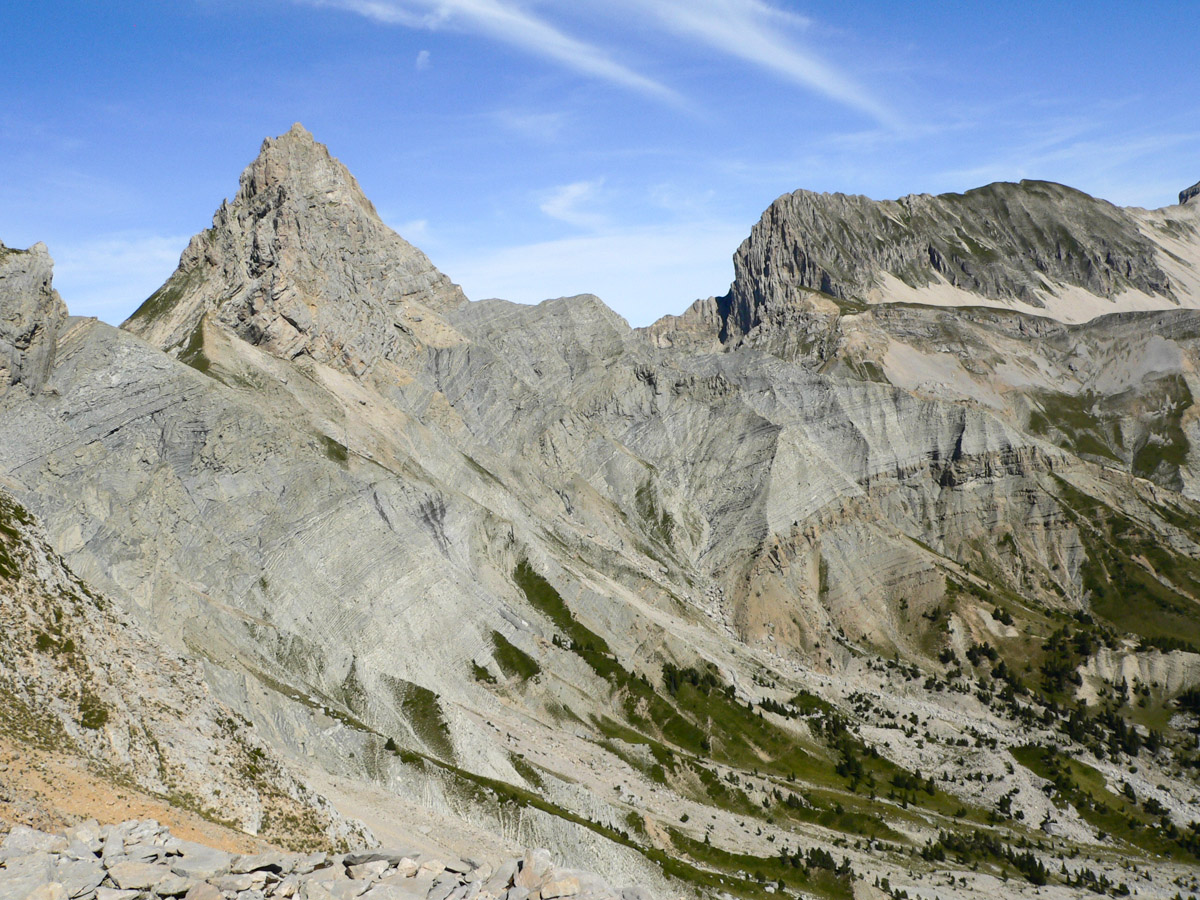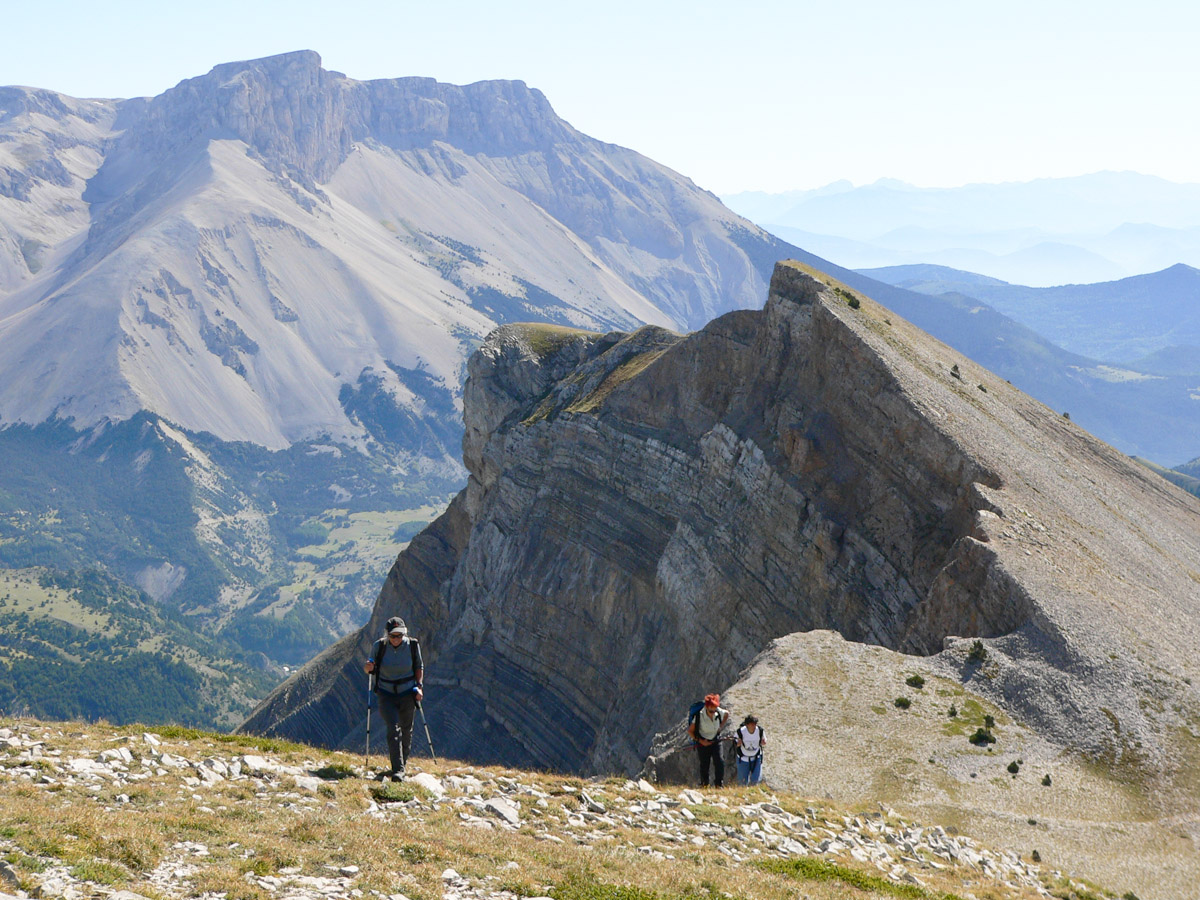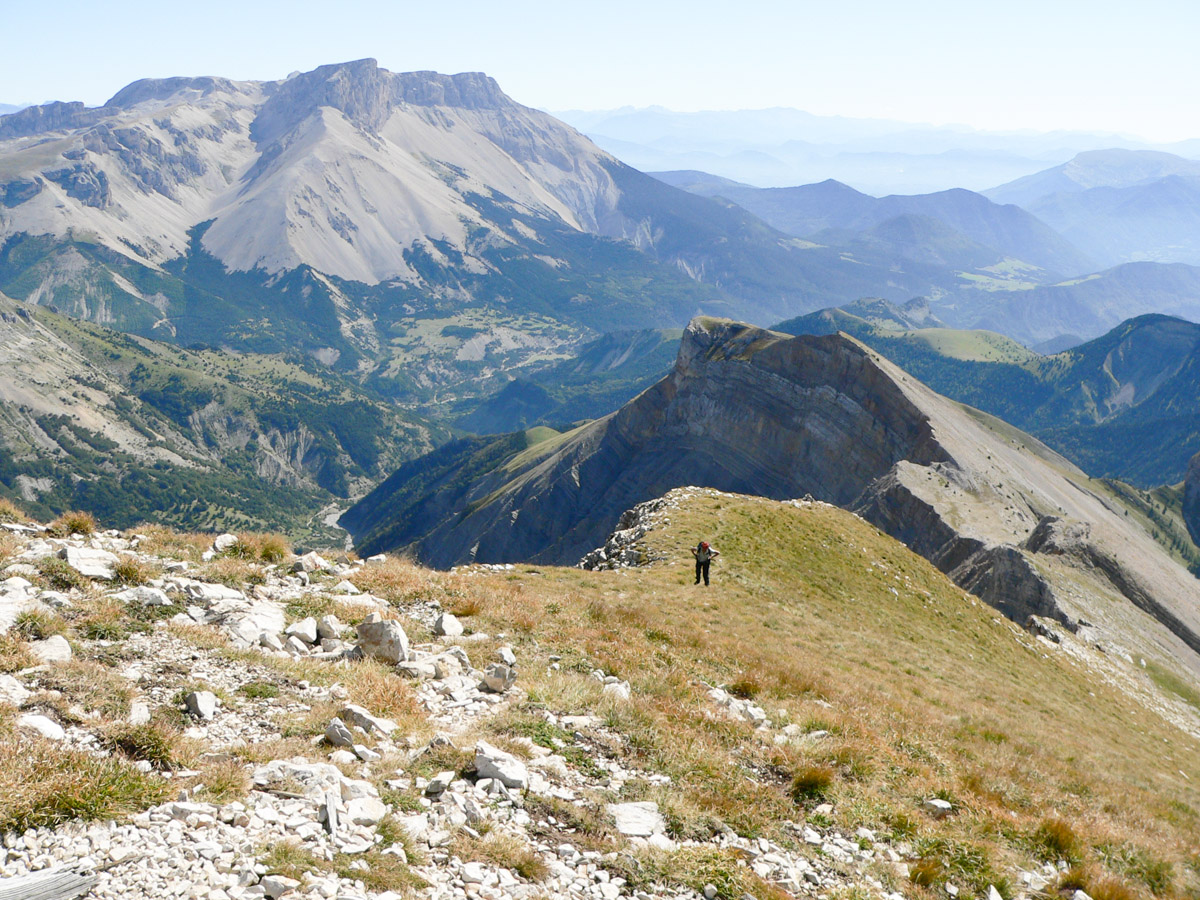 Difficulté : Pour la partie sommitale, parcours d'arêtes dans des pentes raides, rocailleuses et aériennes par endroit, demandant de la vigilance. Attention aux à pics de la face Est. Itinéraire hors sentier pour une partie de la descente.