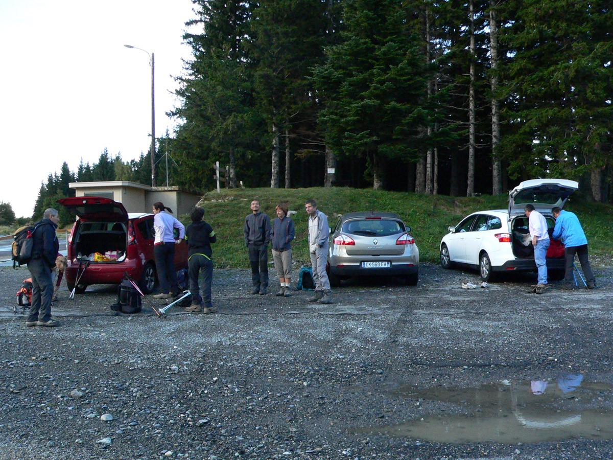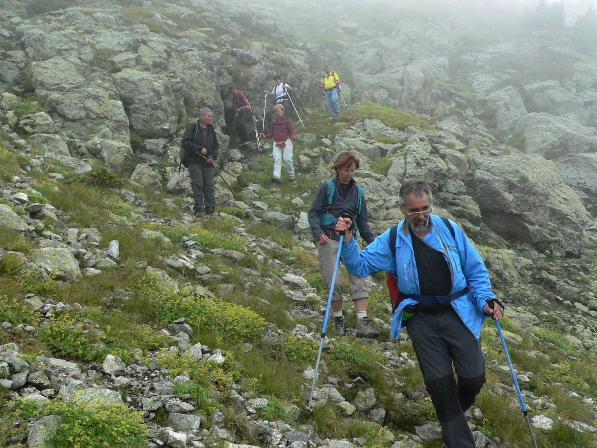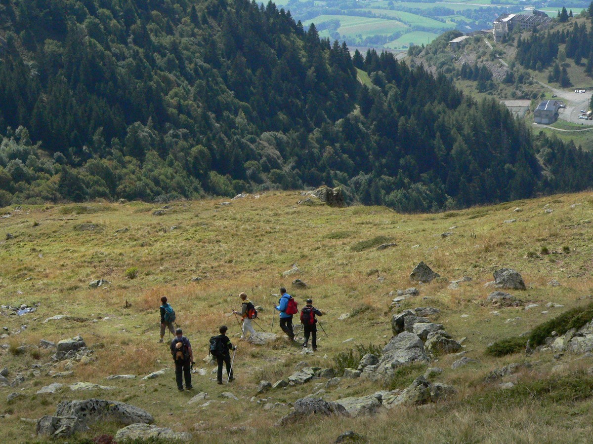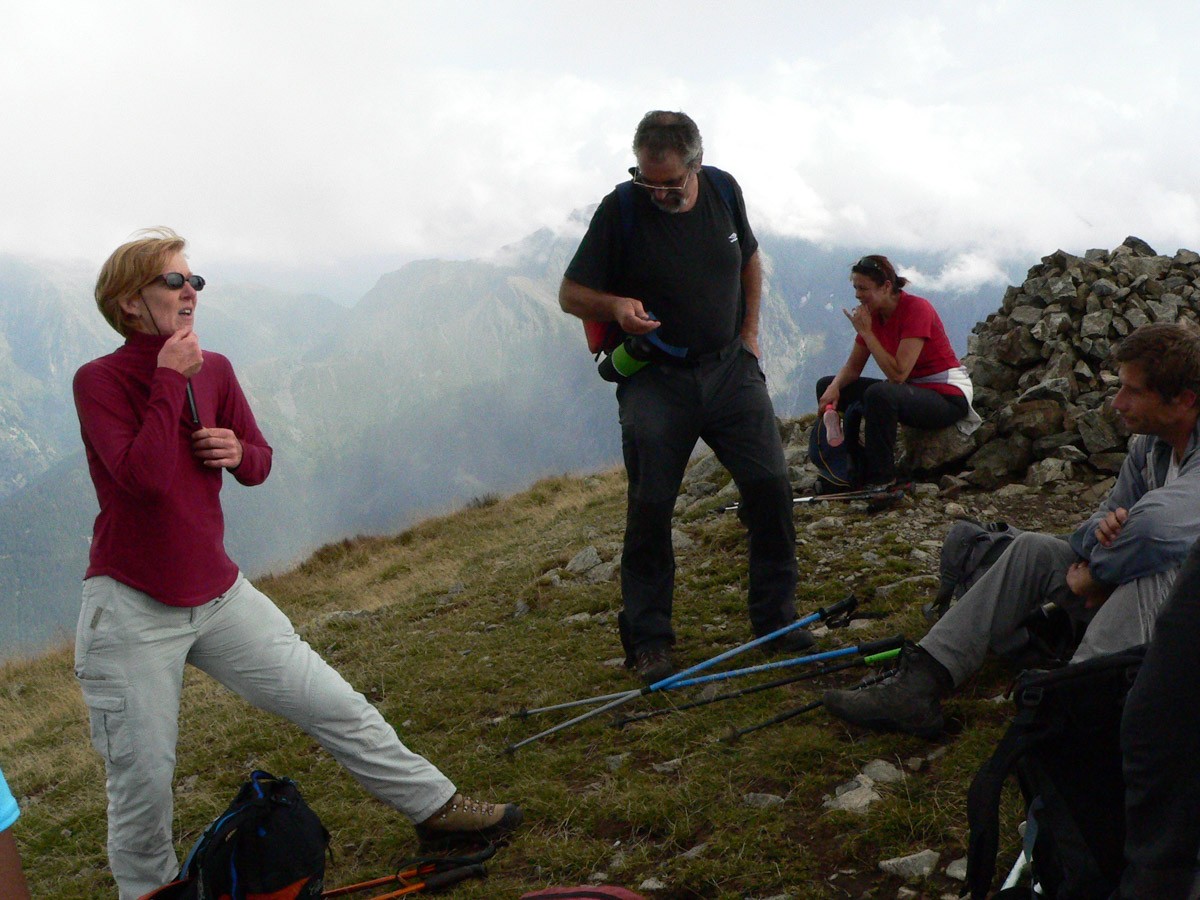 Matériel : Vêtements de saison et imperméable en cas de pluie (!), bâtons, couvre chef (avec paratonnerre), crème solaire (on l'espère utile), gobelet au fond du sac, + ... eh bien tout le reste.