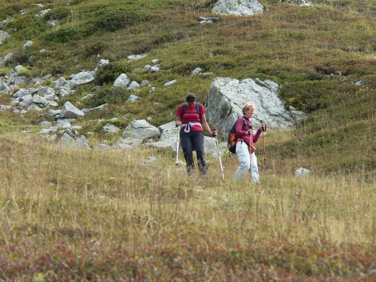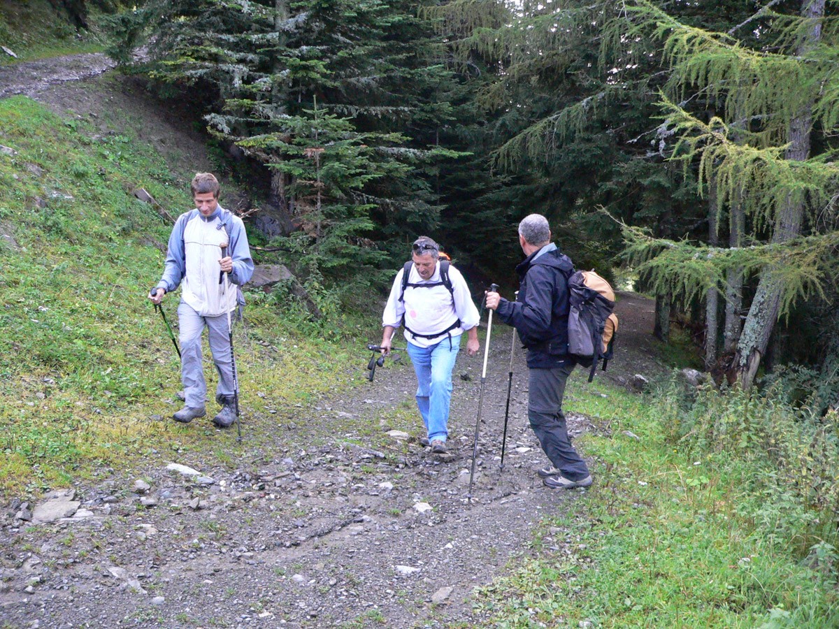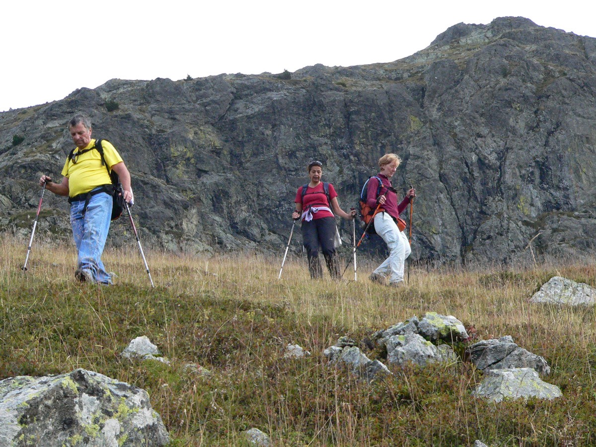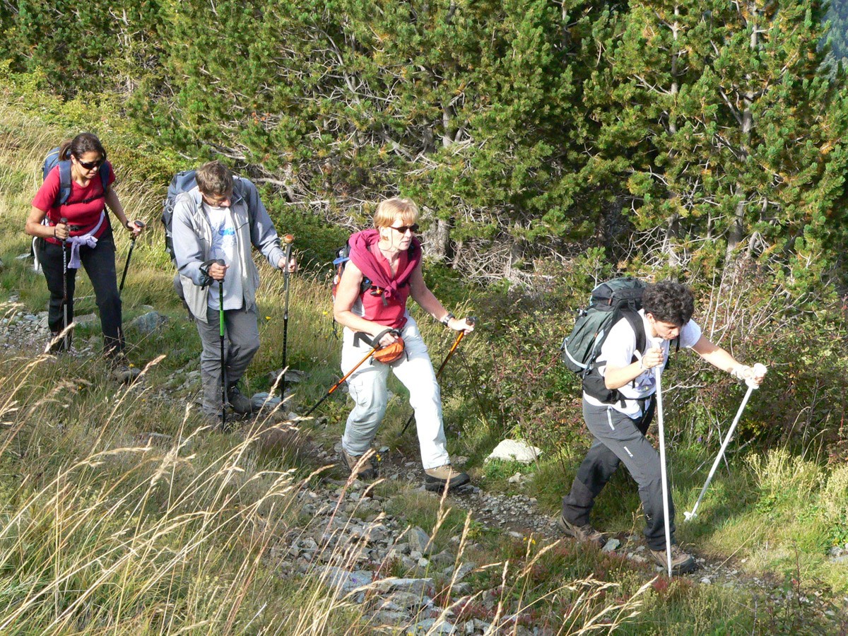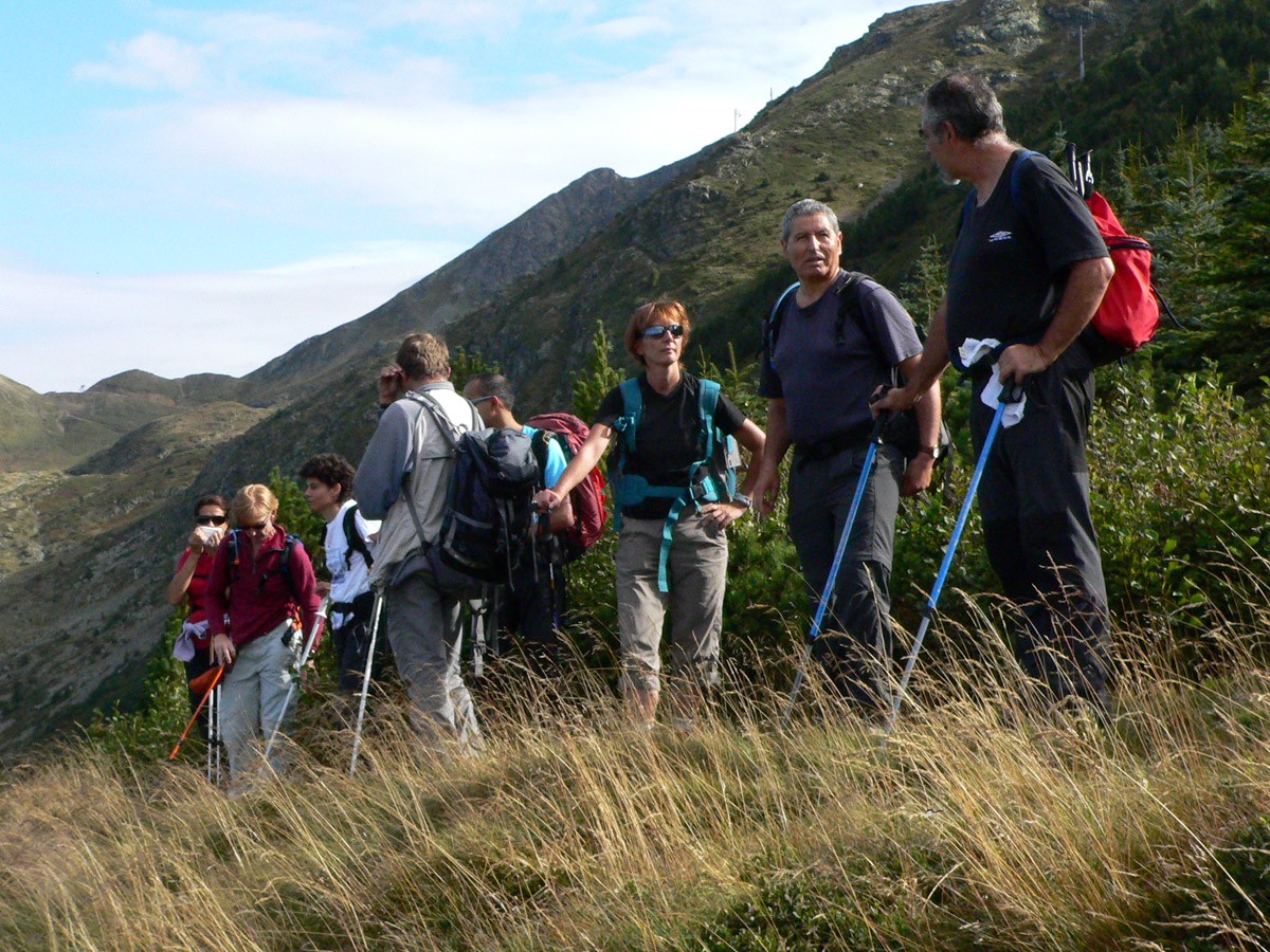 Matériel : Vêtements de saison et imperméable en cas de pluie (!), bâtons, couvre chef (avec paratonnerre), crème solaire (on l'espère utile), gobelet au fond du sac, + ... eh bien tout le reste.