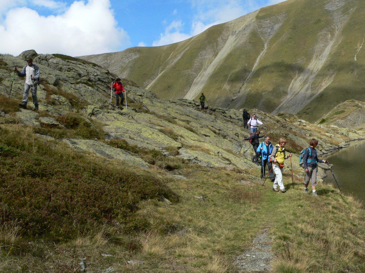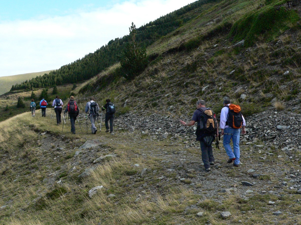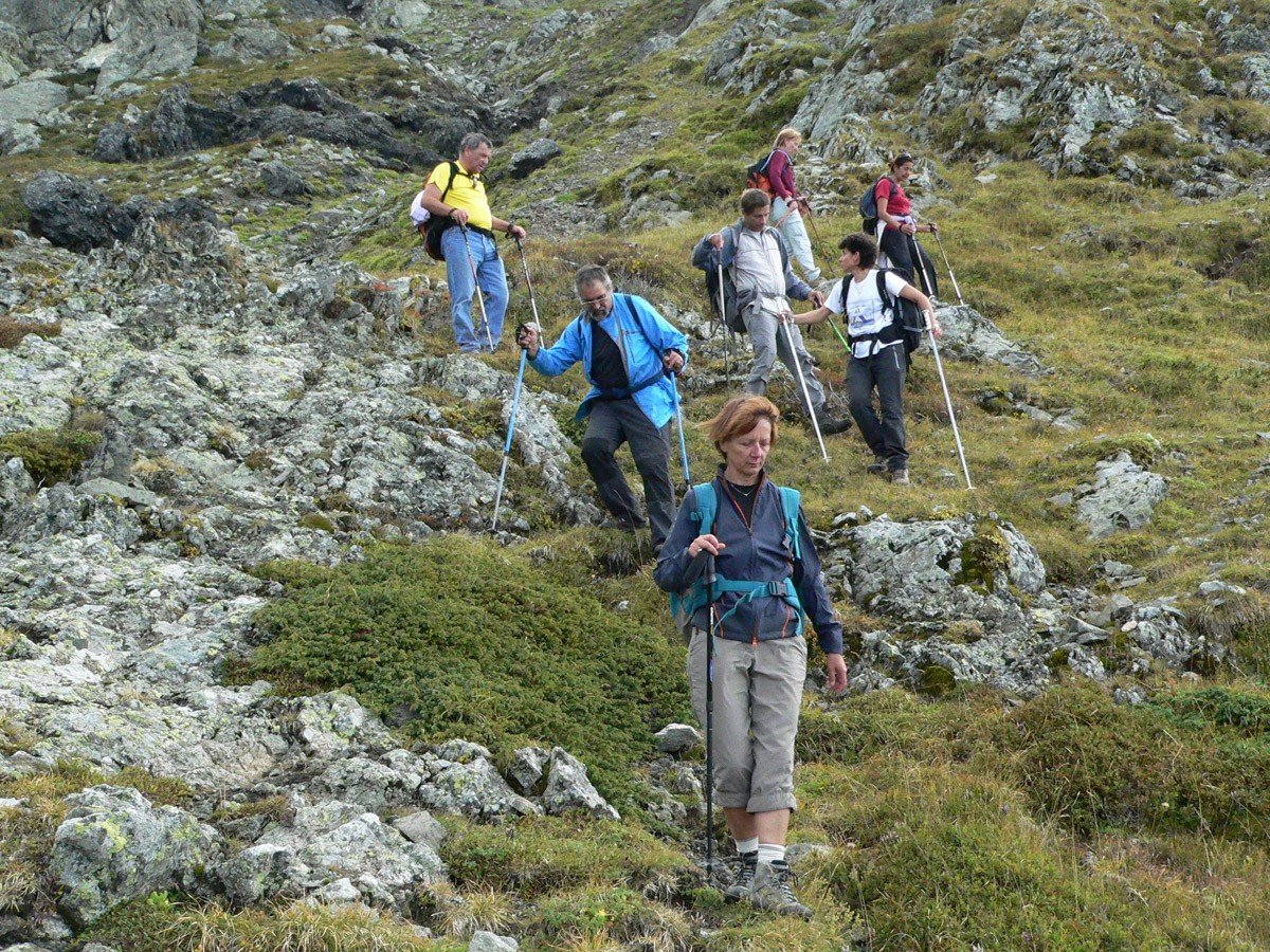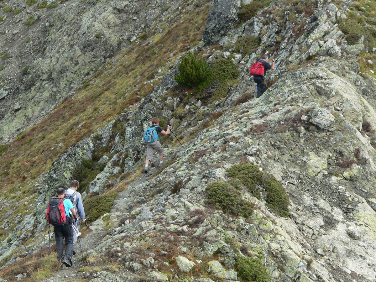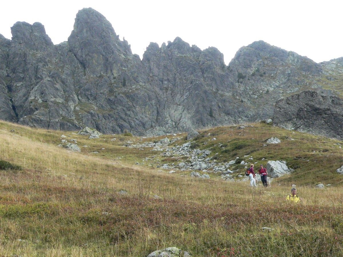 Matériel : Vêtements de saison et imperméable en cas de pluie (!), bâtons, couvre chef (avec paratonnerre), crème solaire (on l'espère utile), gobelet au fond du sac, + ... eh bien tout le reste.