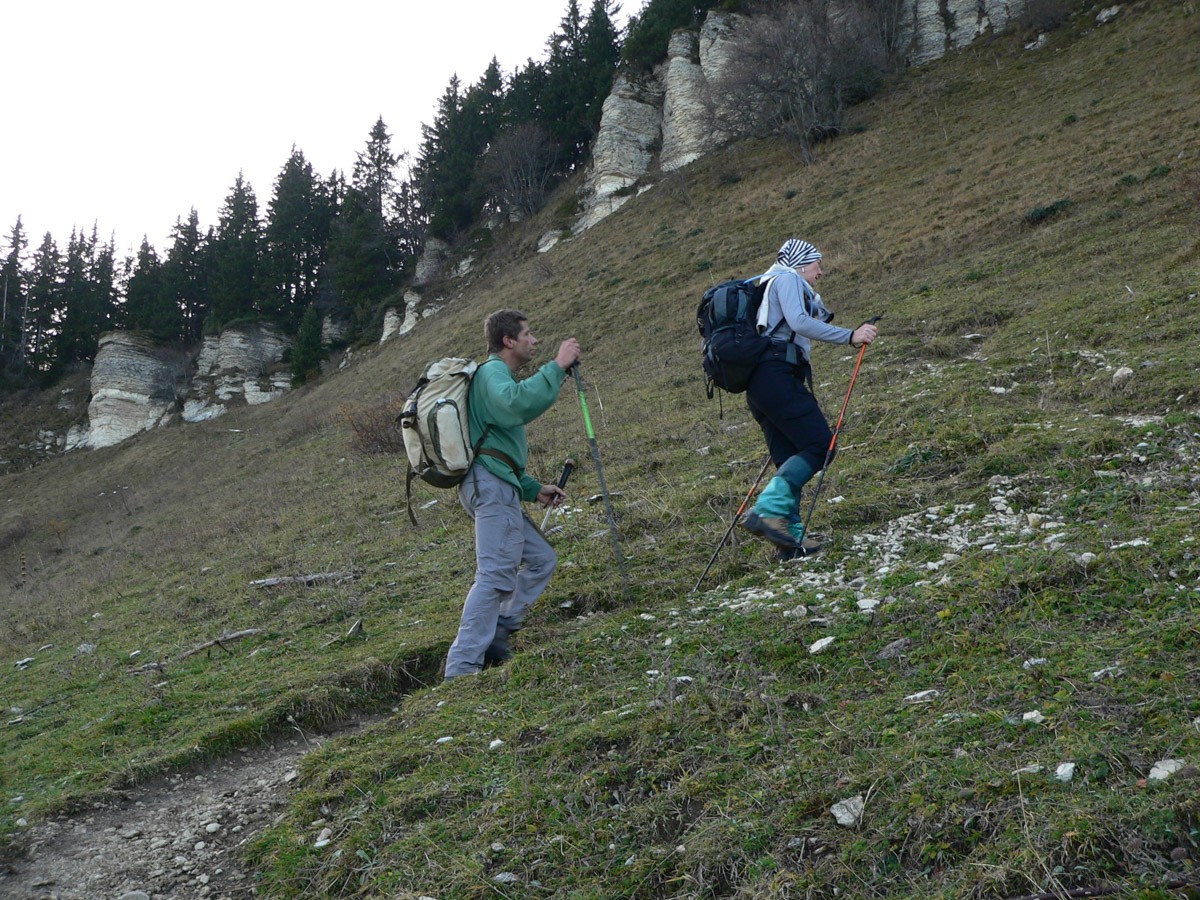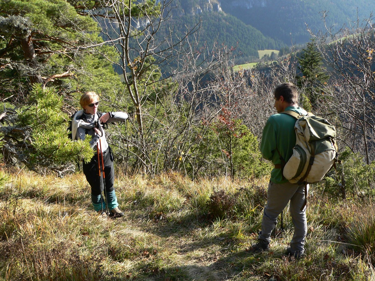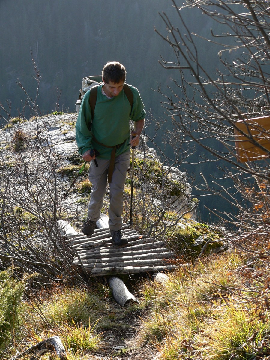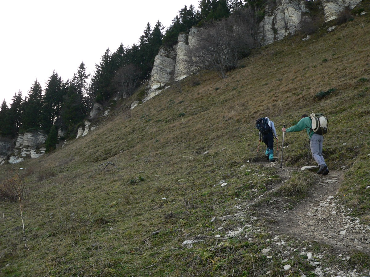 Difficulté : La neige apparaît entre 1400m et 1500 m suivant l'orientation. L'épaisseur, elle aussi, est variable selon l'orientation. Néanmoins il "semble" que la couche ne soit pas trop conséquente et l'usage des raquettes peut paraître inutile. Nous verrons sur place pour passer le pas de l'Ours.