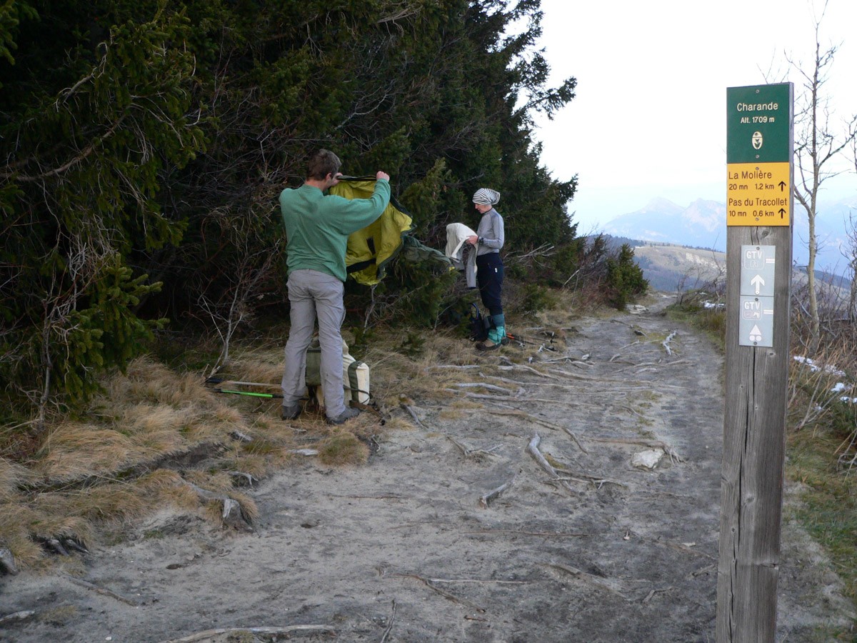 Matériel : Frontale (vérifier les piles), guêtres, vêtements coupe vent et chauds, bâtons télescopiques, polaire, bonnet, gants, + ... eh bien tout le reste.