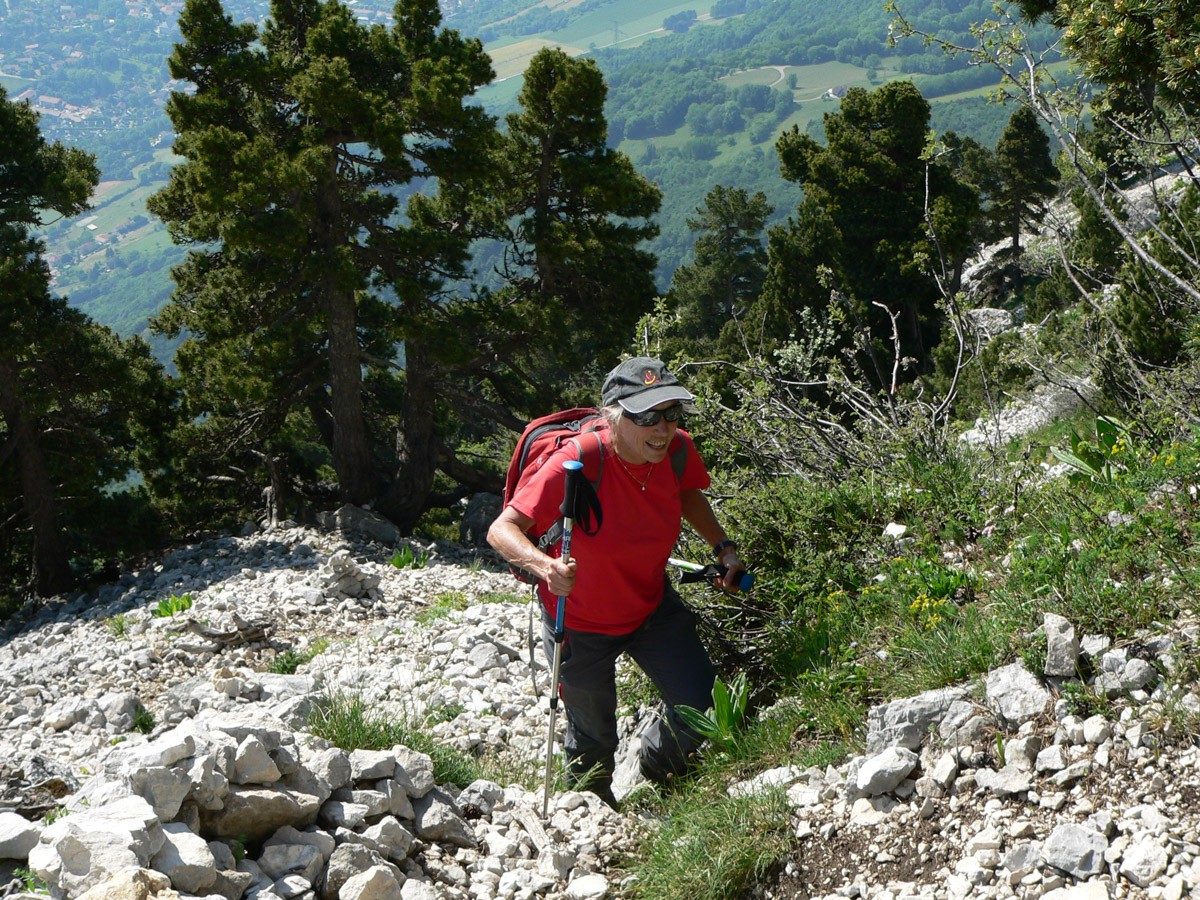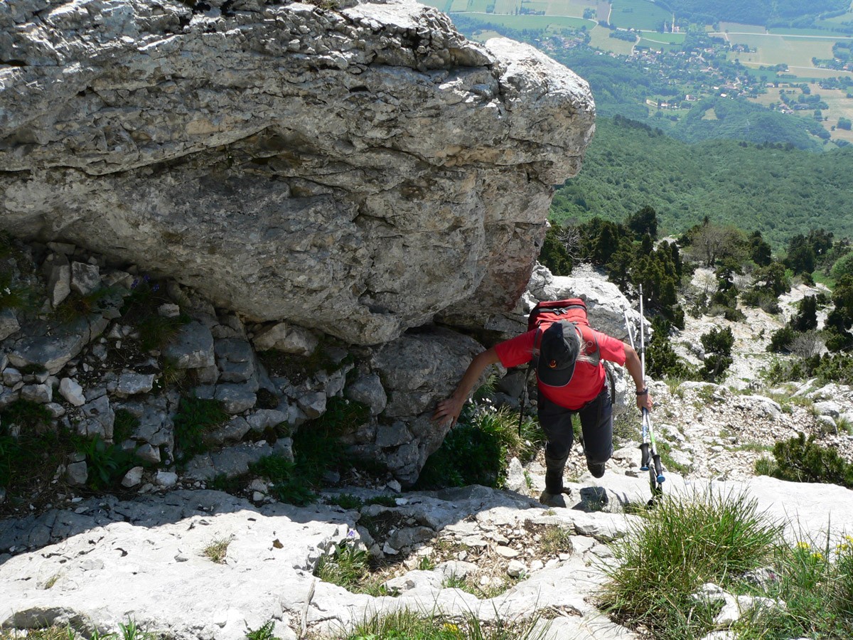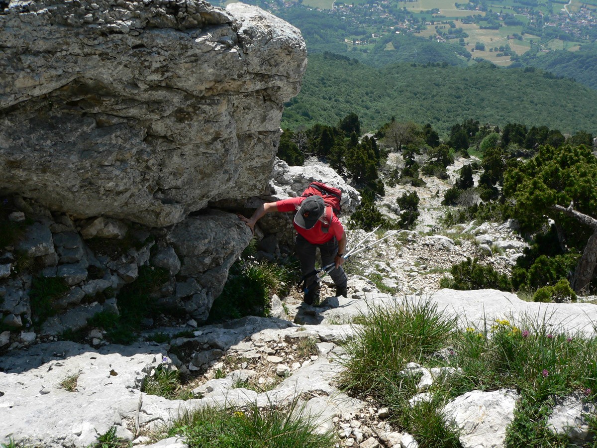 Difficulté : La montée par Château Bouvier comporte au début un passage rocheux équipé d'un câble, mais le rocher est très patiné (prudence). La face Est est raide, escarpée, dans un chemin caillouteux, l'usage des mains est souvent obligatoire (petites escalades).