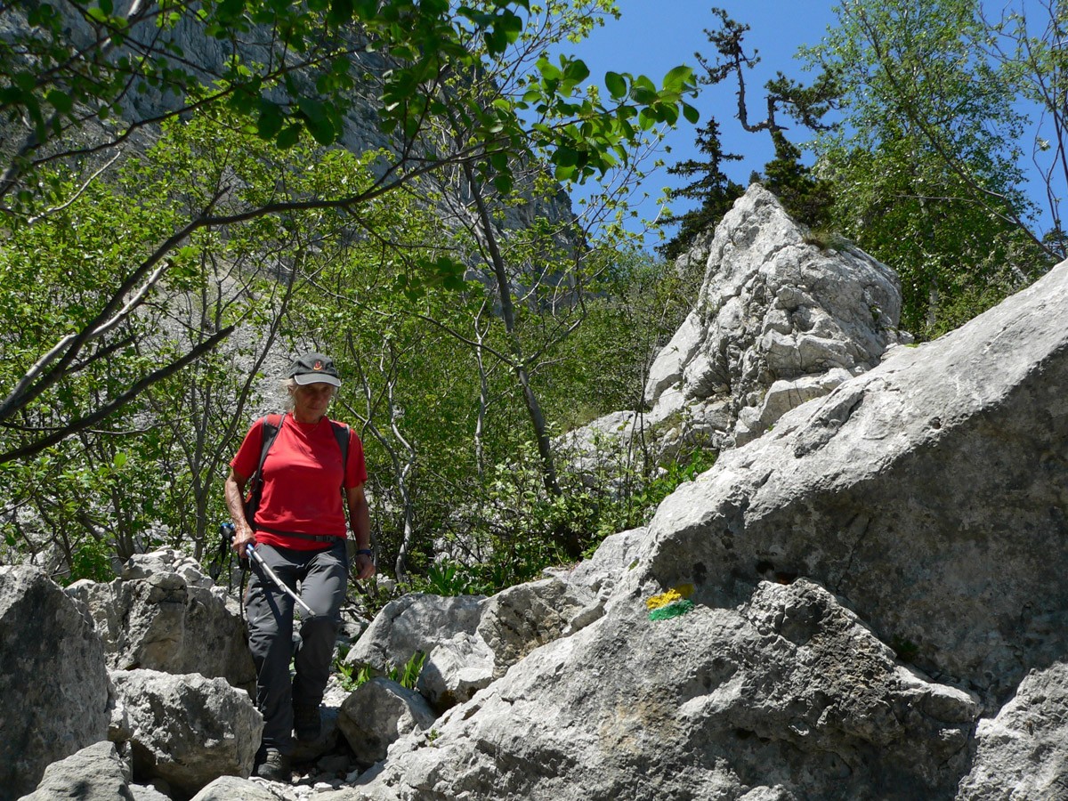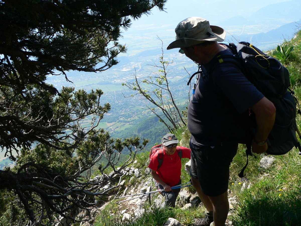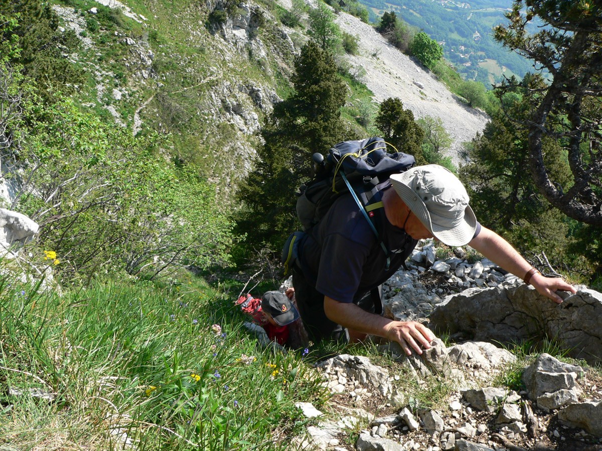 Difficulté : La montée par Château Bouvier comporte au début un passage rocheux équipé d'un câble, mais le rocher est très patiné (prudence). La face Est est raide, escarpée, dans un chemin caillouteux, l'usage des mains est souvent obligatoire (petites escalades).