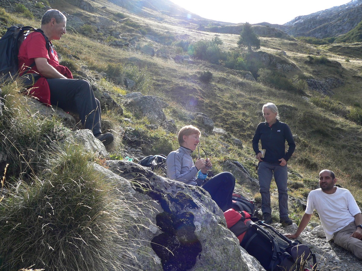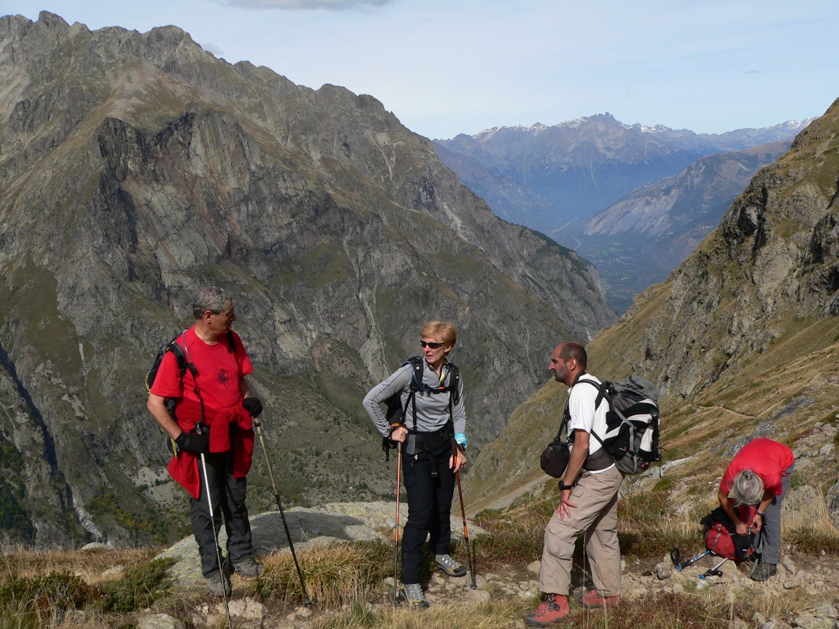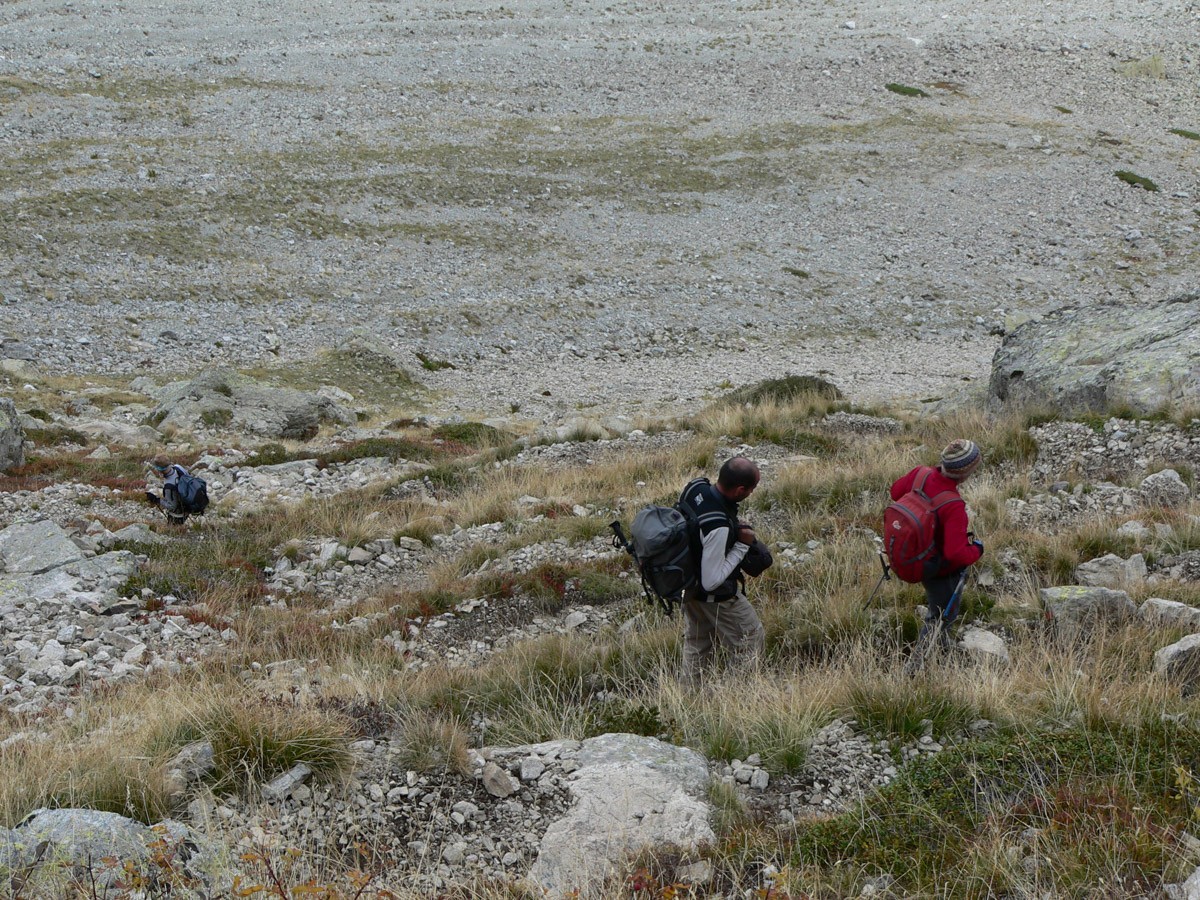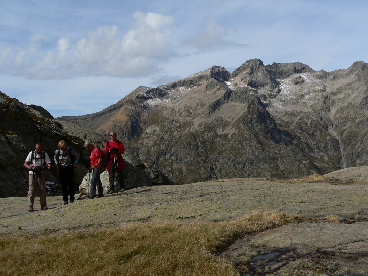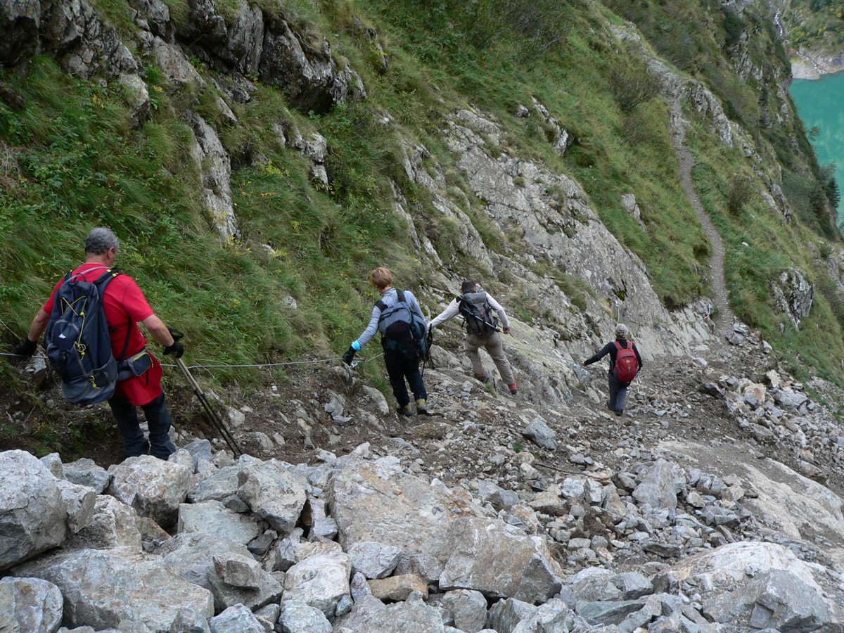 Difficulté : D'abord le dénivelé important et la longueur. De plus, la neige vient de faire son apparition en altitude. Nous verrons donc sur place l'état du terrain. Après le lac du Lauvitel, entre la Côte de la Traversette et le ruisseau de l'Embernard, le GR 54 a été emporté en 2014 par des éboulements. Il a été entièrement restauré sur cette partie (purge, retraçage, déroctage et pauses de mains courantes), réouverture fin juin 2015. Néanmoins toute cette partie, située dans une zone de pente importante (passage du ravin, dalle et béquet rocheux), demande une grande vigilance, surtout en terrain humide. De même, le début de la descente du col du Vallon sur le lac de la Muzelle, très pentu, réclame de l'attention.
