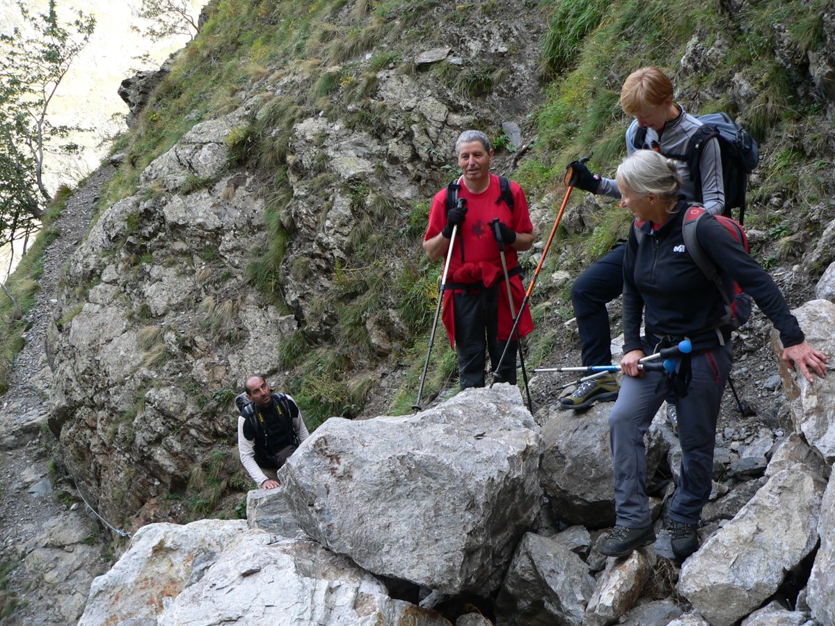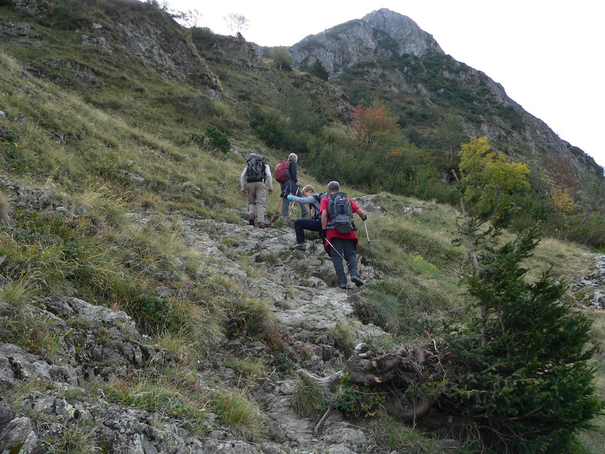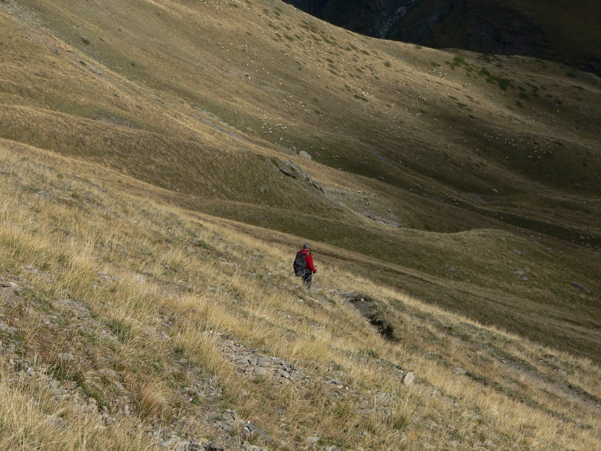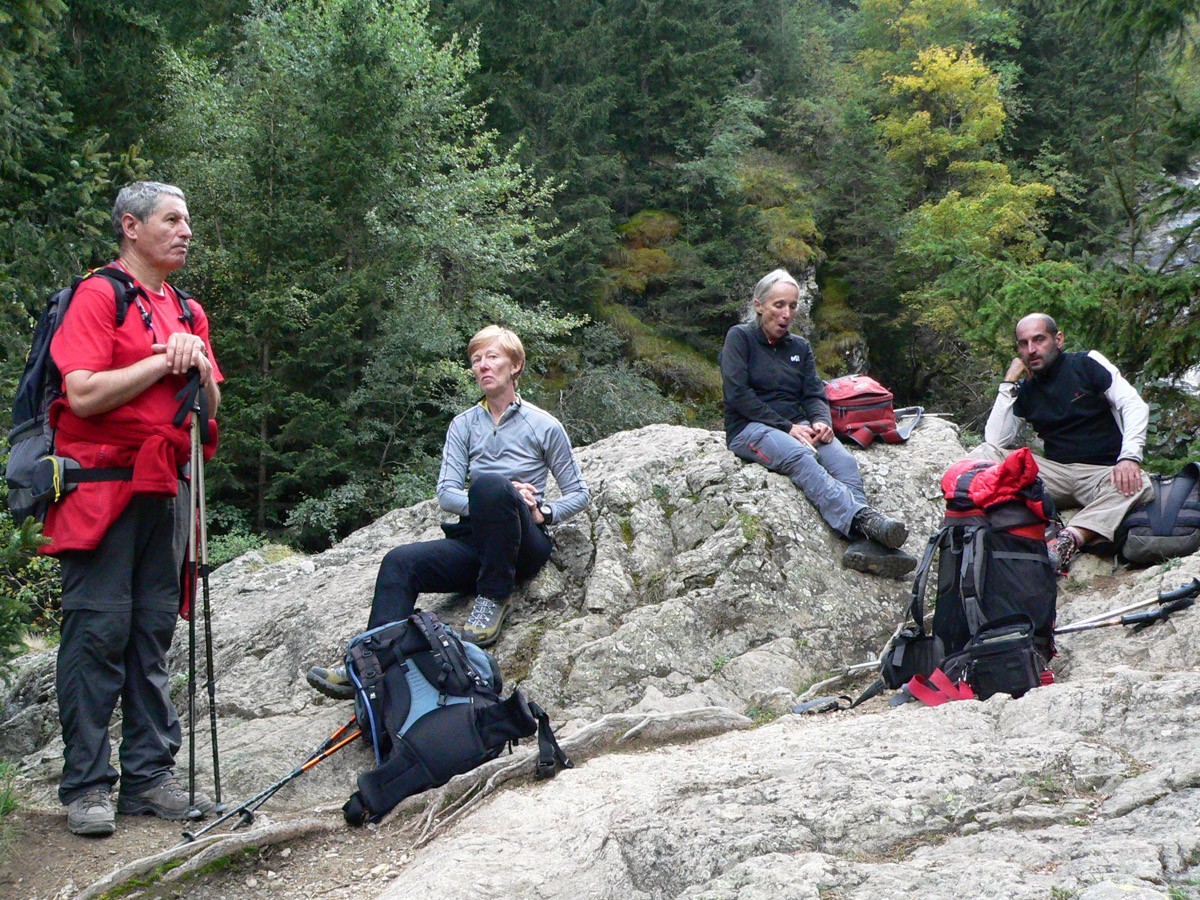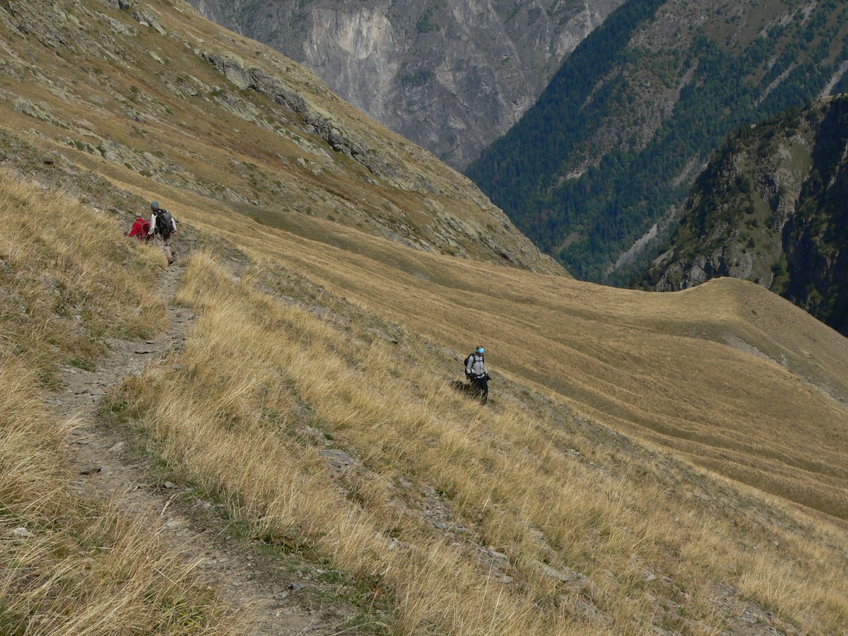Difficulté : D'abord le dénivelé important et la longueur. De plus, la neige vient de faire son apparition en altitude. Nous verrons donc sur place l'état du terrain. Après le lac du Lauvitel, entre la Côte de la Traversette et le ruisseau de l'Embernard, le GR 54 a été emporté en 2014 par des éboulements. Il a été entièrement restauré sur cette partie (purge, retraçage, déroctage et pauses de mains courantes), réouverture fin juin 2015. Néanmoins toute cette partie, située dans une zone de pente importante (passage du ravin, dalle et béquet rocheux), demande une grande vigilance, surtout en terrain humide. De même, le début de la descente du col du Vallon sur le lac de la Muzelle, très pentu, réclame de l'attention.